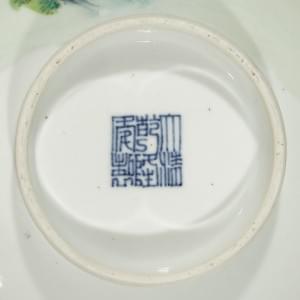 Porcelaine émaillée polychrome à décor d'un paysage, H 8 cm.