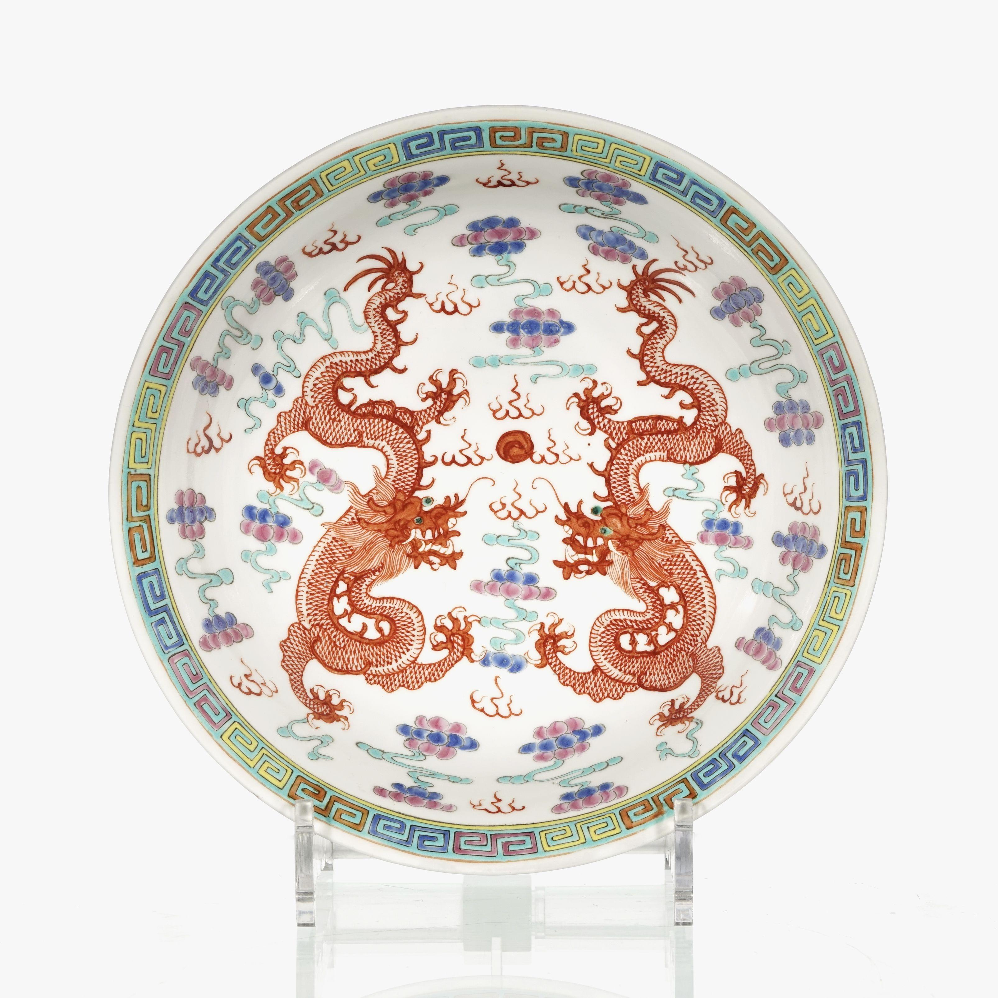 Porcelaine émaillée à décor de dragons, D 21 cm