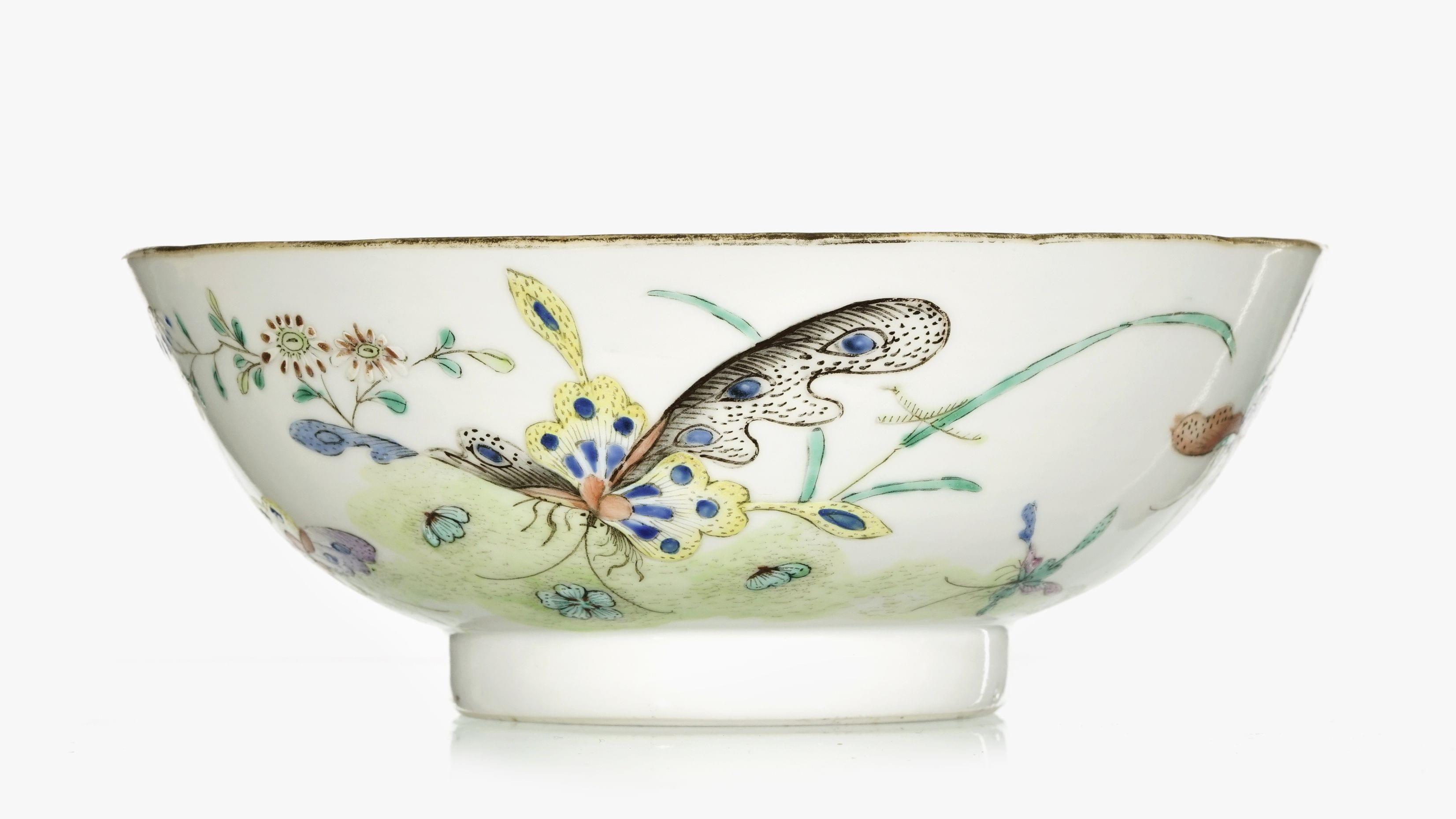 Porcelaine émaillée à décor de papillons, D 16,5 cm