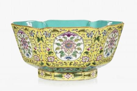 Porcelaine émaillée à décor de lotus, D 12,5 cm