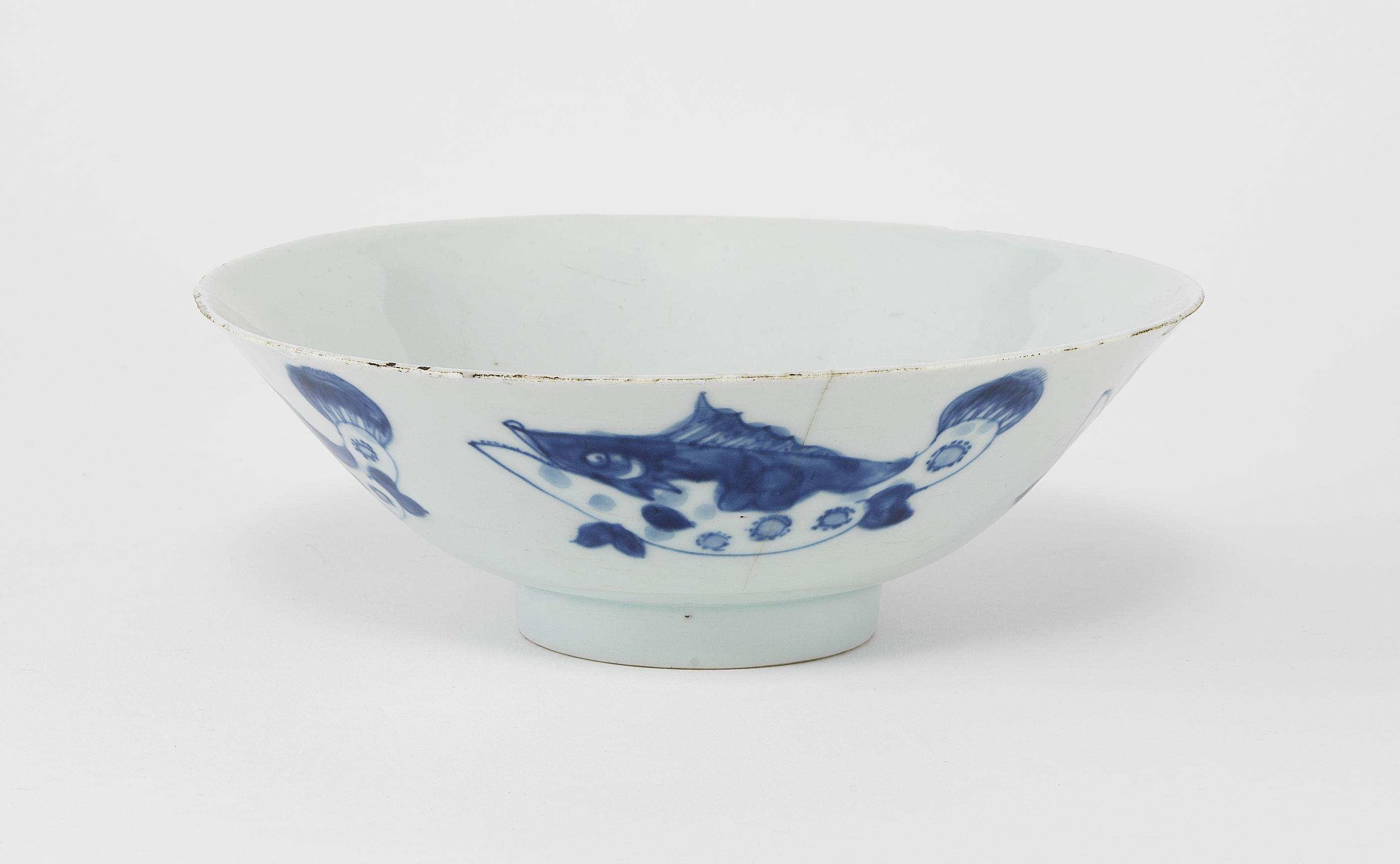 Porcelaine émaillée bleu blanc à motif de poisson, D 20 cm