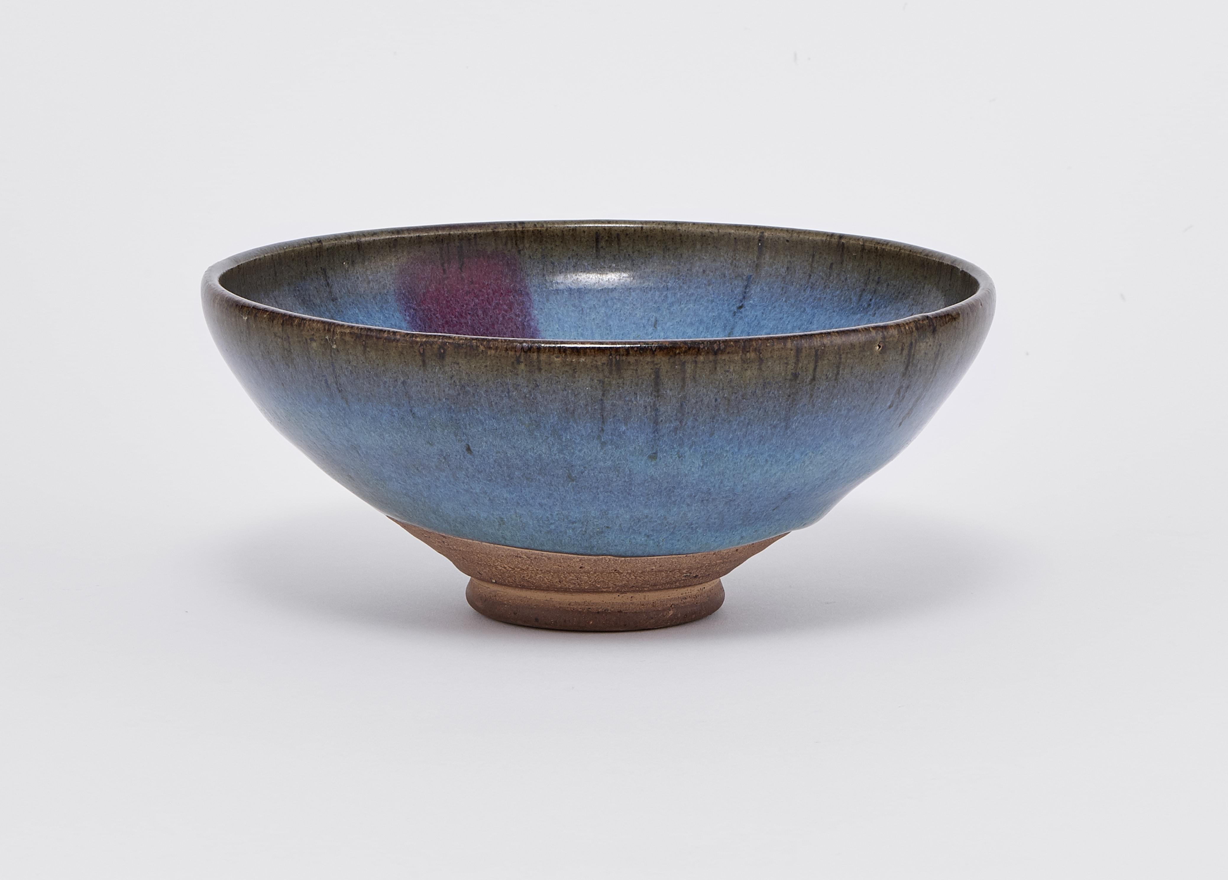 Grès à couverte monochrome turquoise tacheté de pourpre, D 19 cm