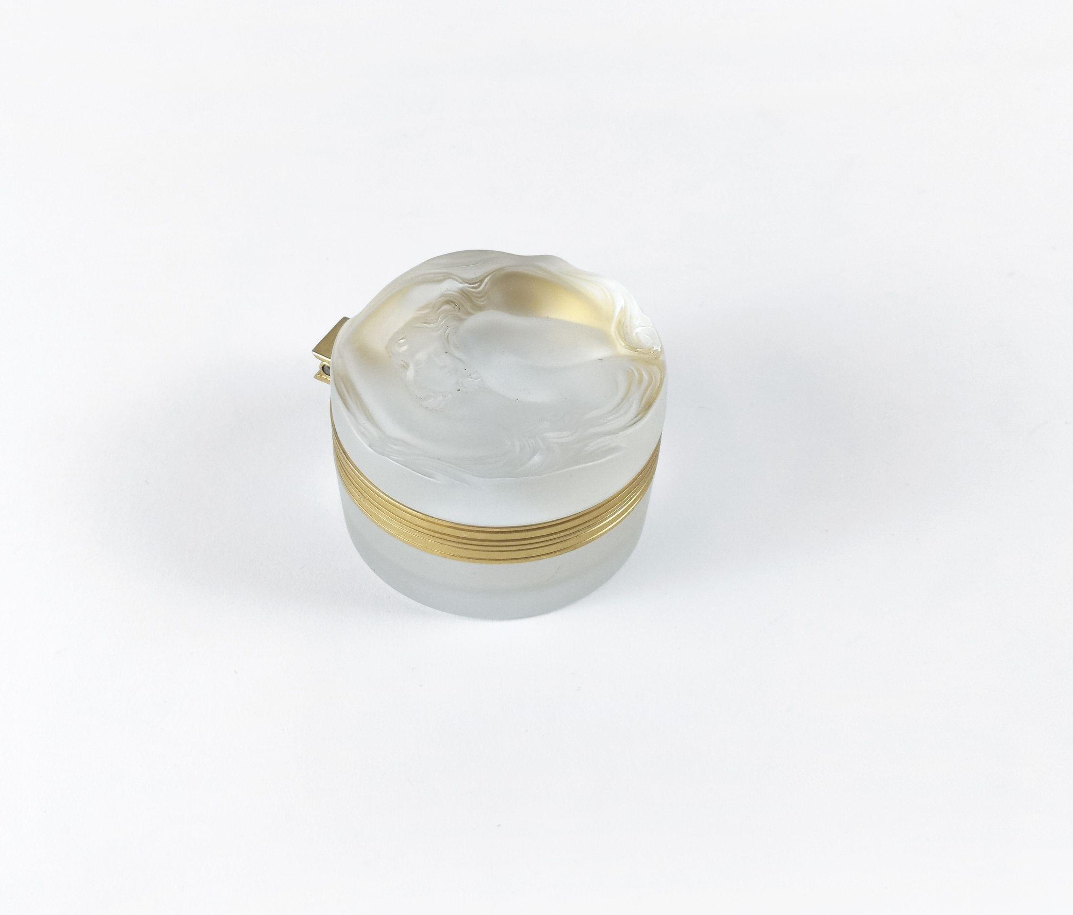 Lalique, verre moulé-pressé, monture en métal doré, D 8 cm