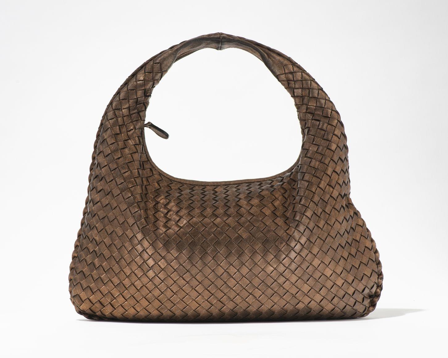Sac à main tressé cuir barolo, intérieur en daim, fermeture Ecla...