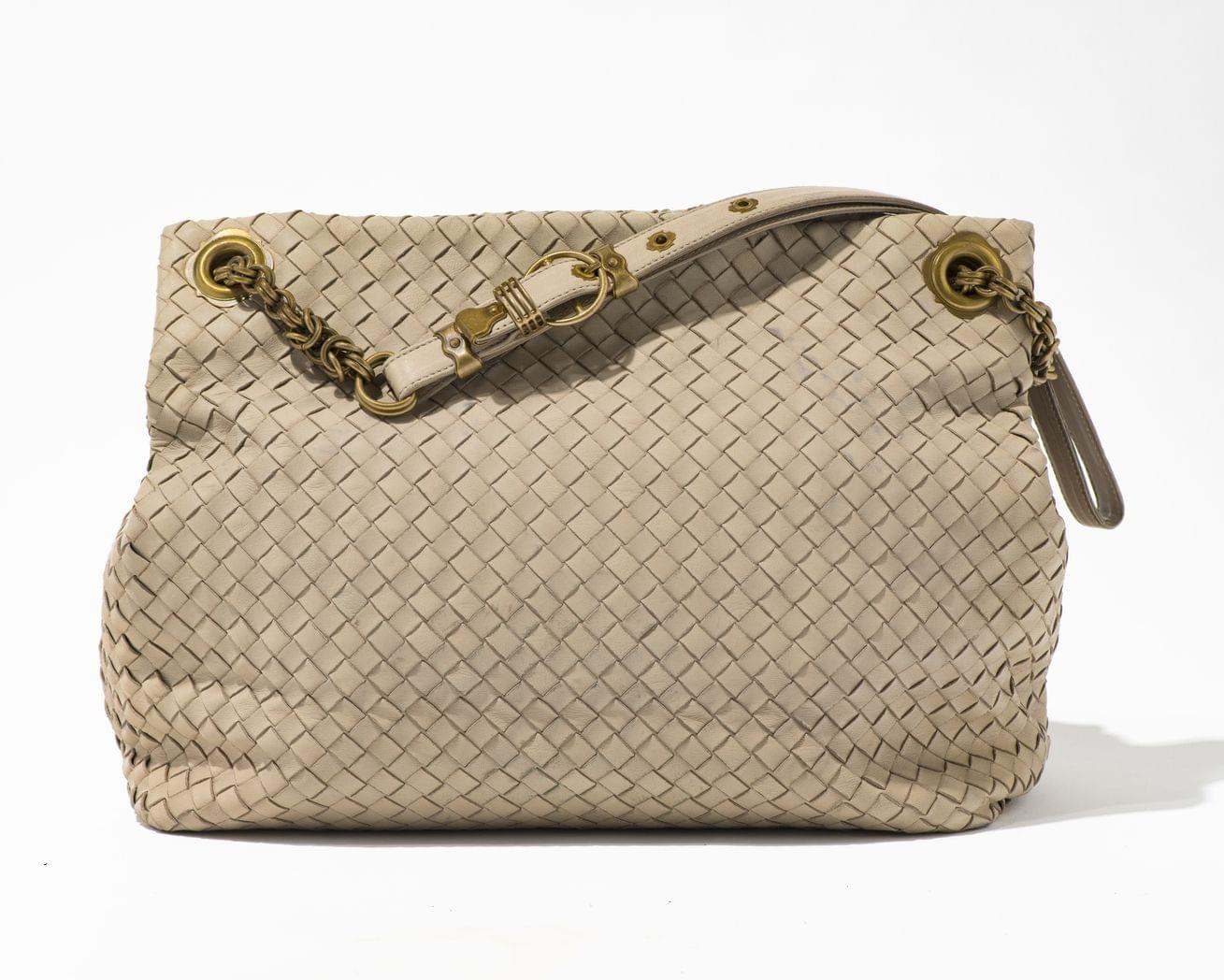 Sac à main tressé cuir barolo, intérieur en daim, fermeture Ecla...