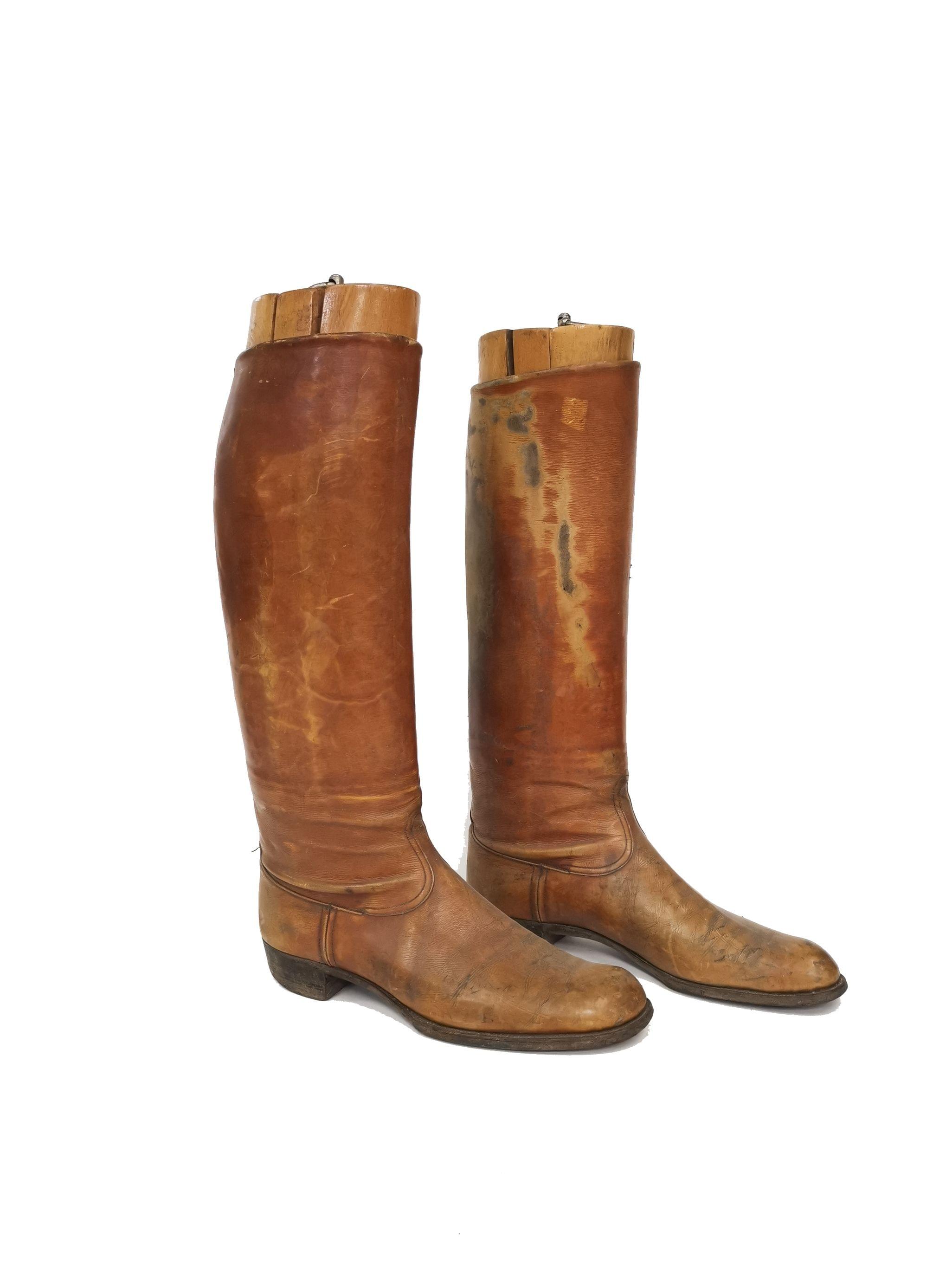 Cuir fauve, taille environ 44-45, H 47 cm, avec leur forme en bois