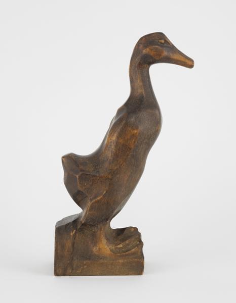 Canard, bois sculpté, signé, H 28 cm