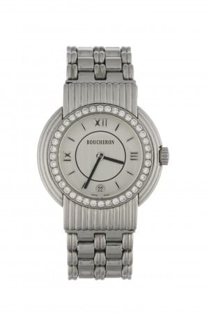 619. Boucheron, montre ronde à quartz sertie de diamants
