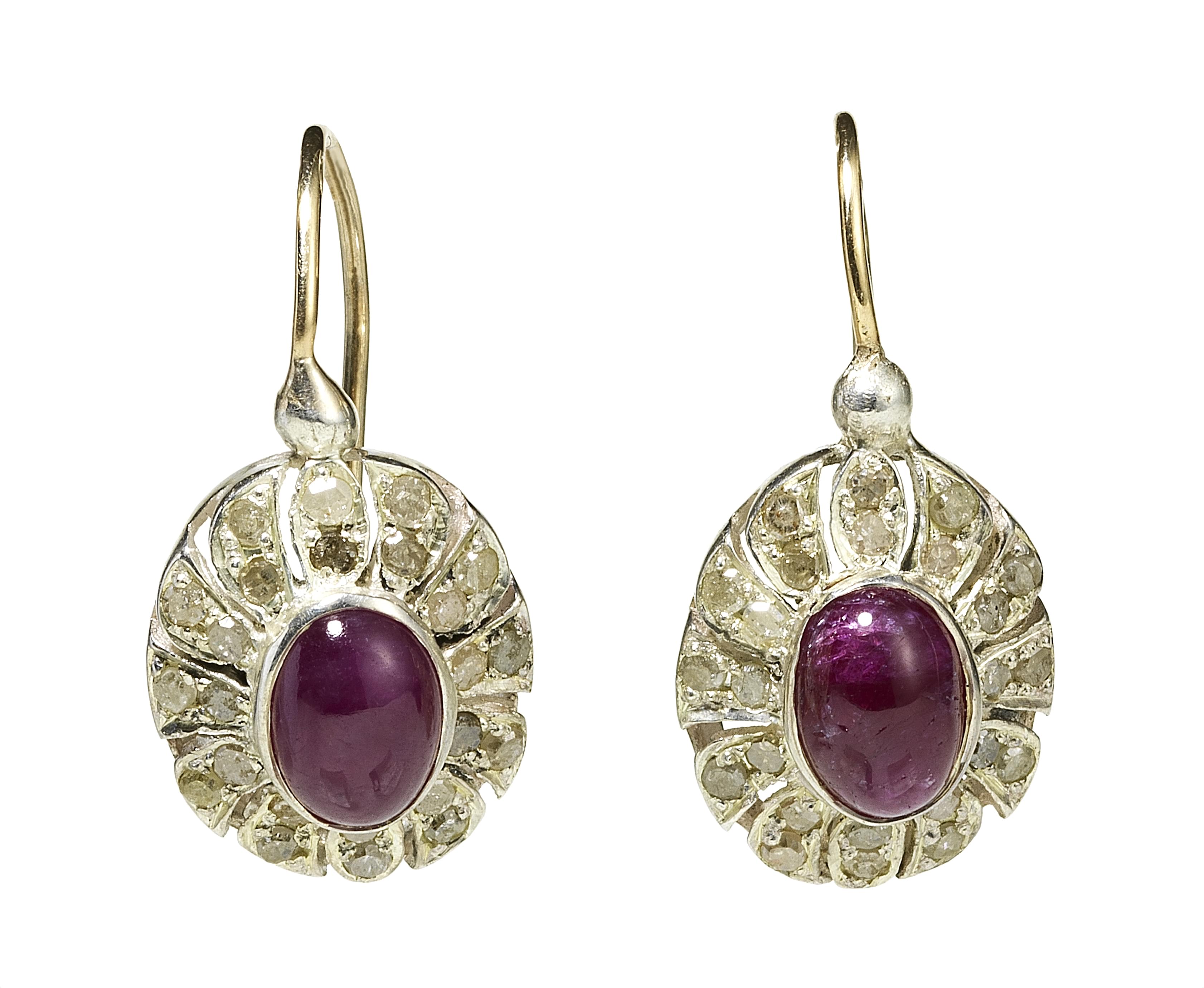 3085. *Boucles d'oreilles centrées chacune d'un rubis taille cabochon ovale