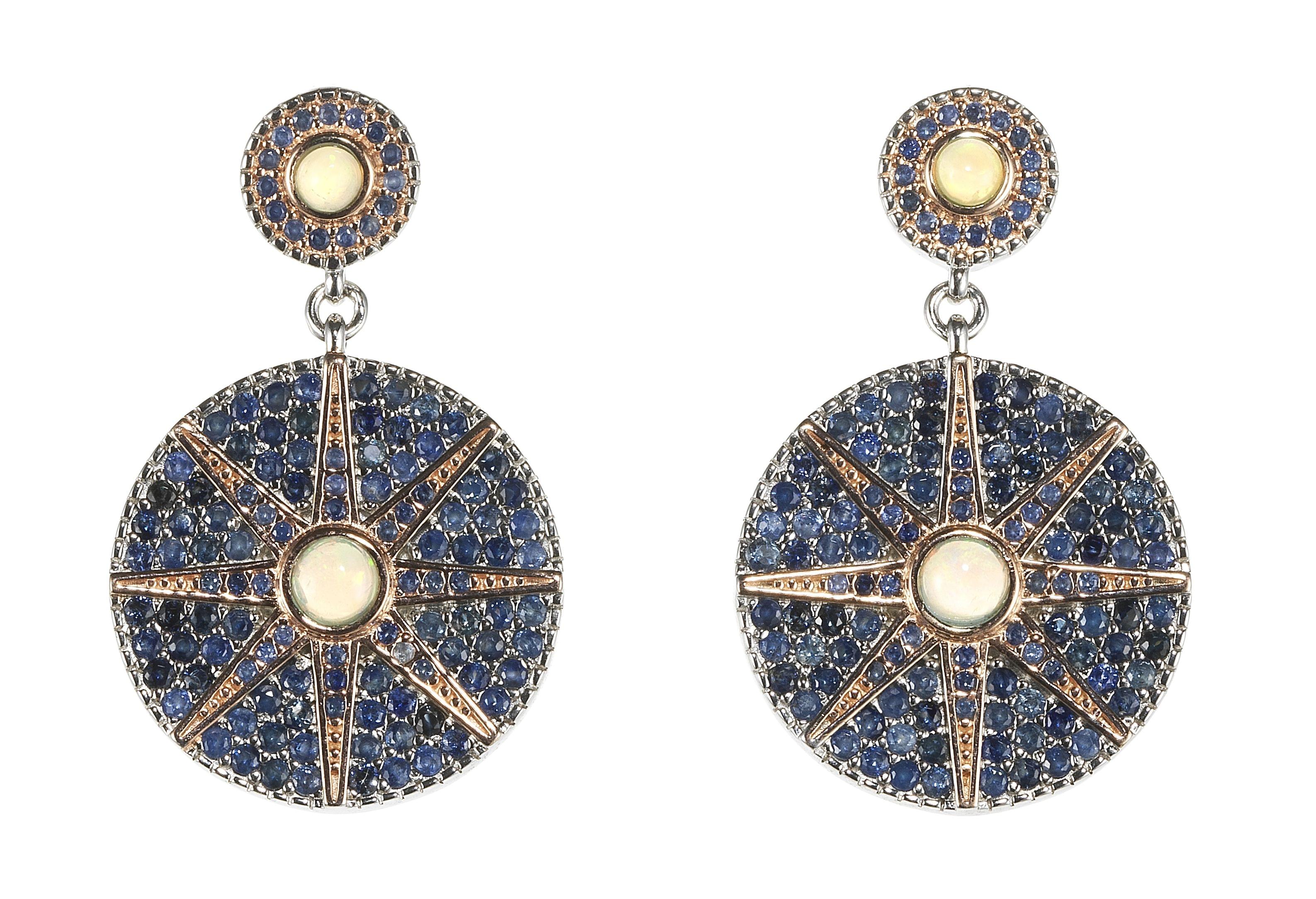 64. Pendants d'oreilles longs sertis de saphirs de couleurs bleus, r...