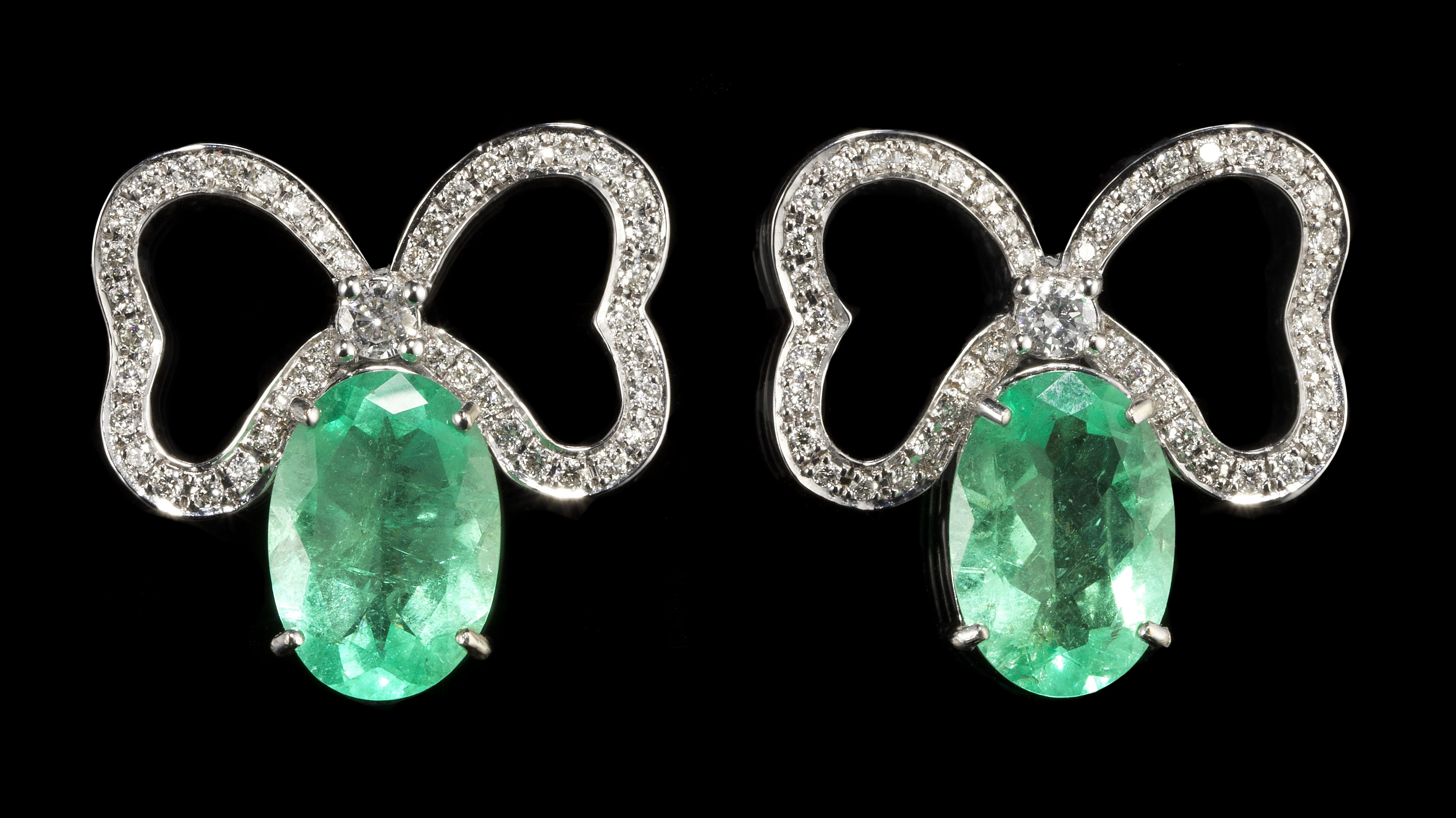 3540. *Boucles d'oreilles serties d'émeraudes de Colombie taille ovale (total 5,33 ct)