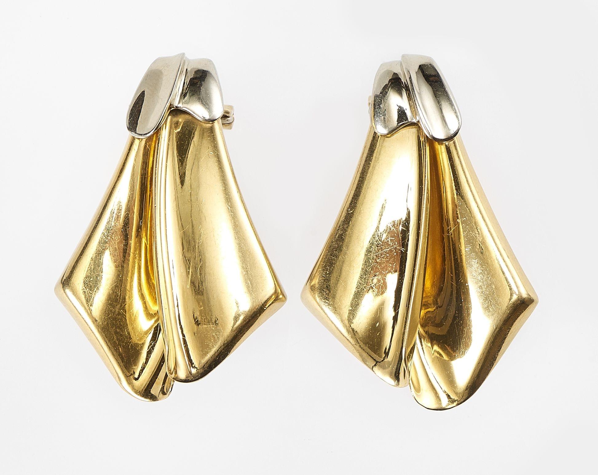 3443. Boucles d'oreilles à motif stylisé deux ors