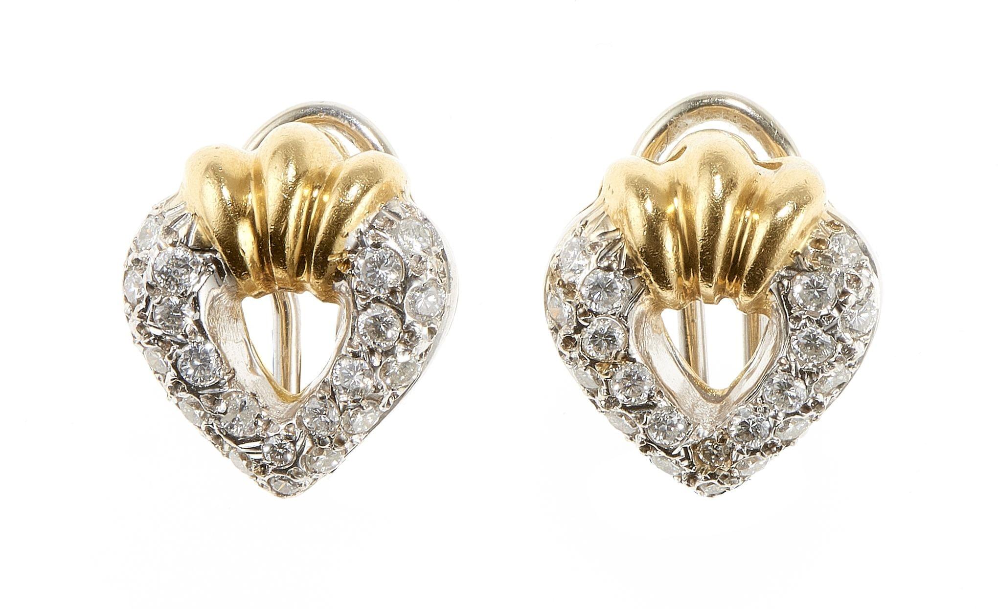 4284. Boucles d'oreilles à motifs de cœurs pavés de diamants et rehaussés de motifs godronnés (env. 0,8 ct)