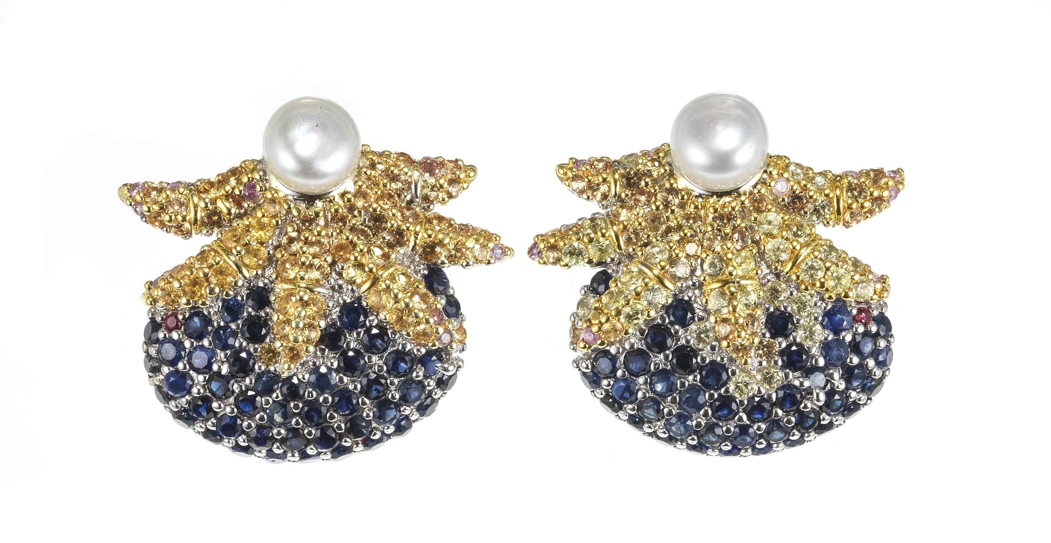 226. *Bracelet ciselé serti d'une ligne de saphirs multicolores (env....
