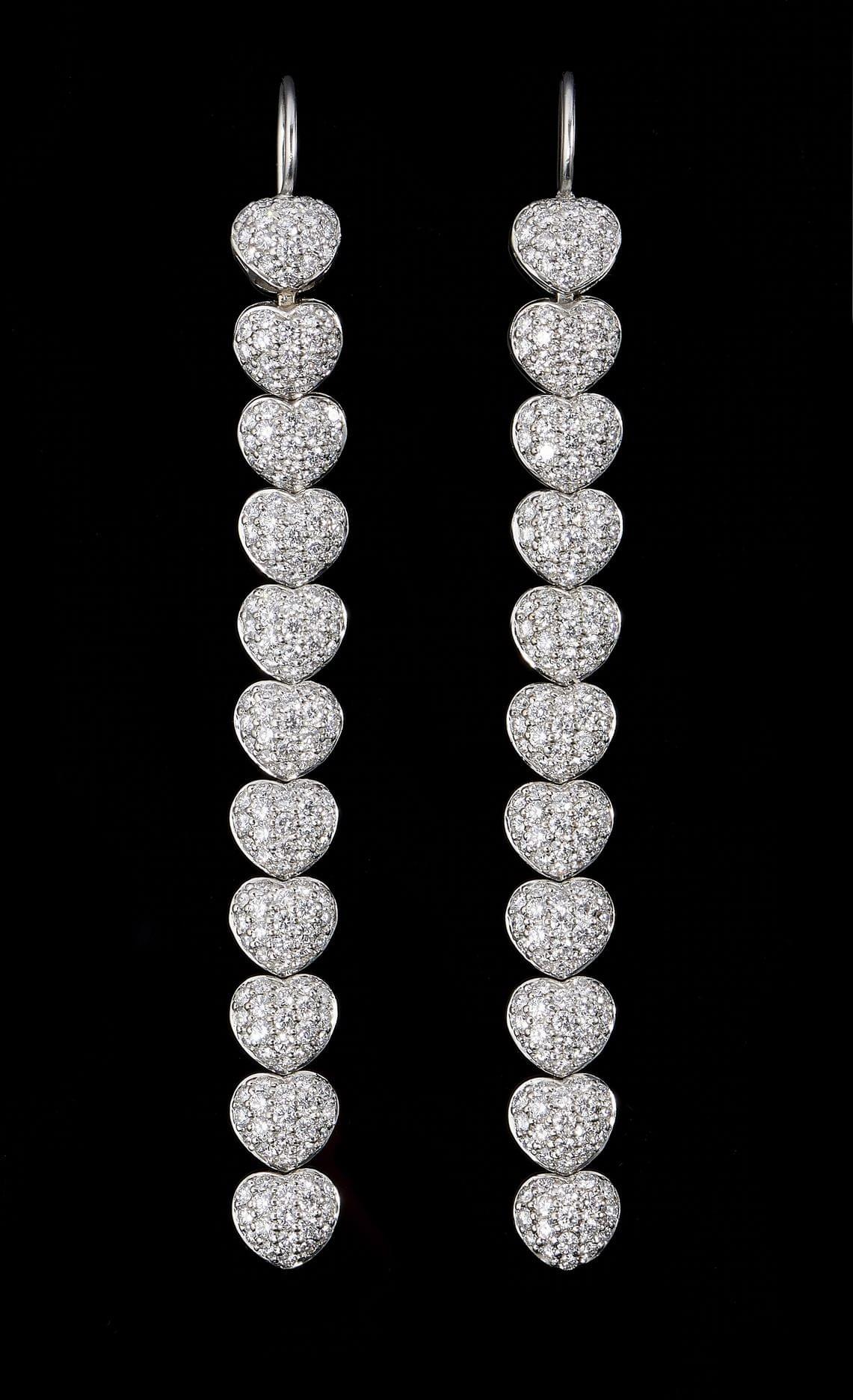 192. Boucles d'oreilles longues à motifs de cœurs pavés de diamants (env. 5,5 ct)