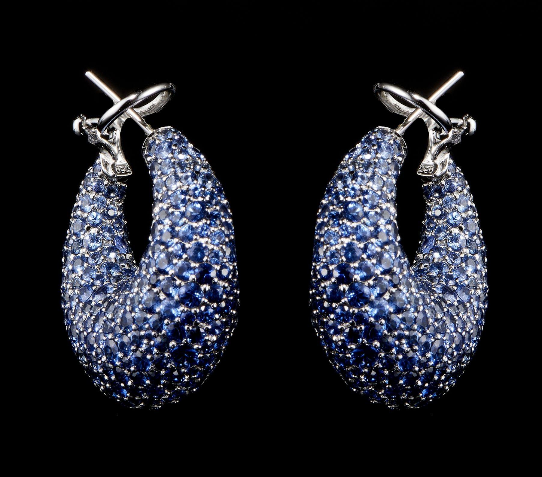 106. Pendants d'oreilles Art déco sertis de saphirs taille cabochon d...