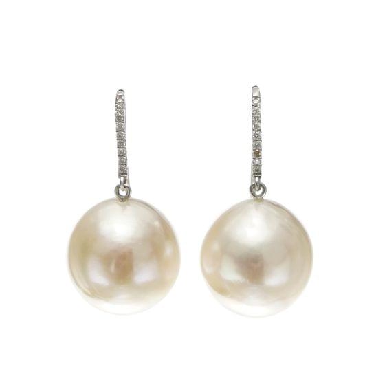 3144. Boucles d'oreilles retenant deux perles surmontées d'une ligne de diamants