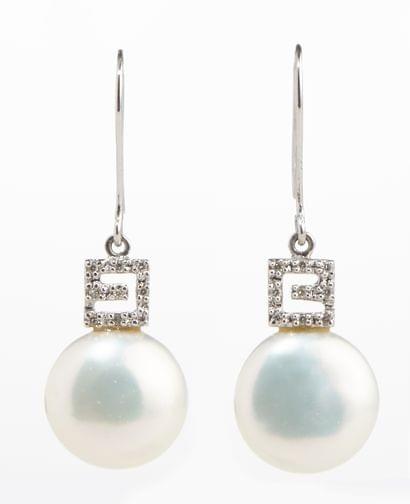 3185. Boucles d'oreilles serties de perles plates rehaussées de diamants