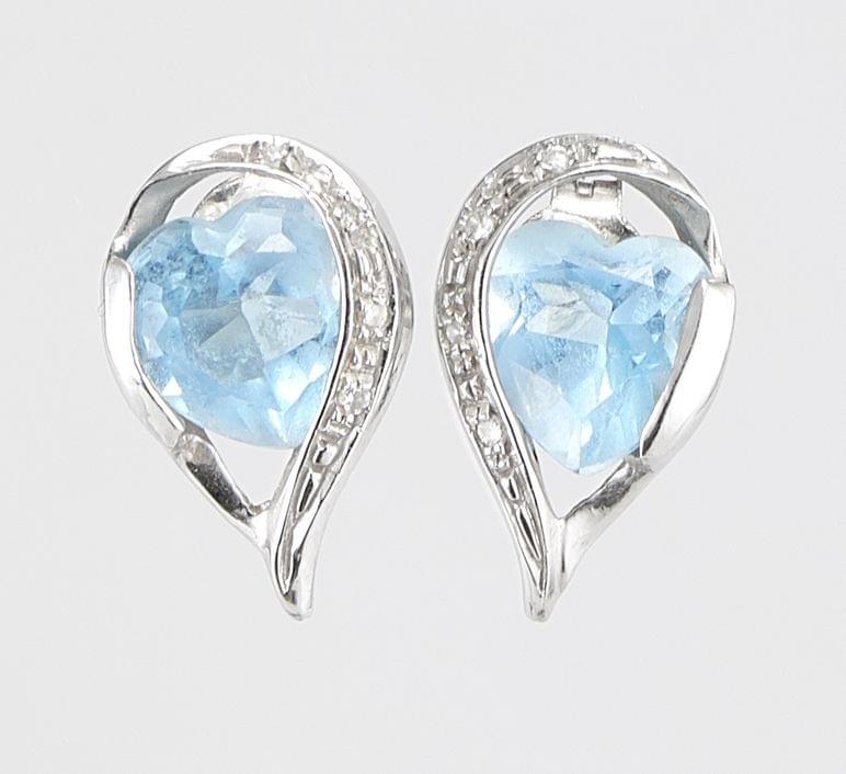 3349. Boucles d'oreilles stylisées serties de topazes bleues taille cœur rehaussées d'une ligne de diamants