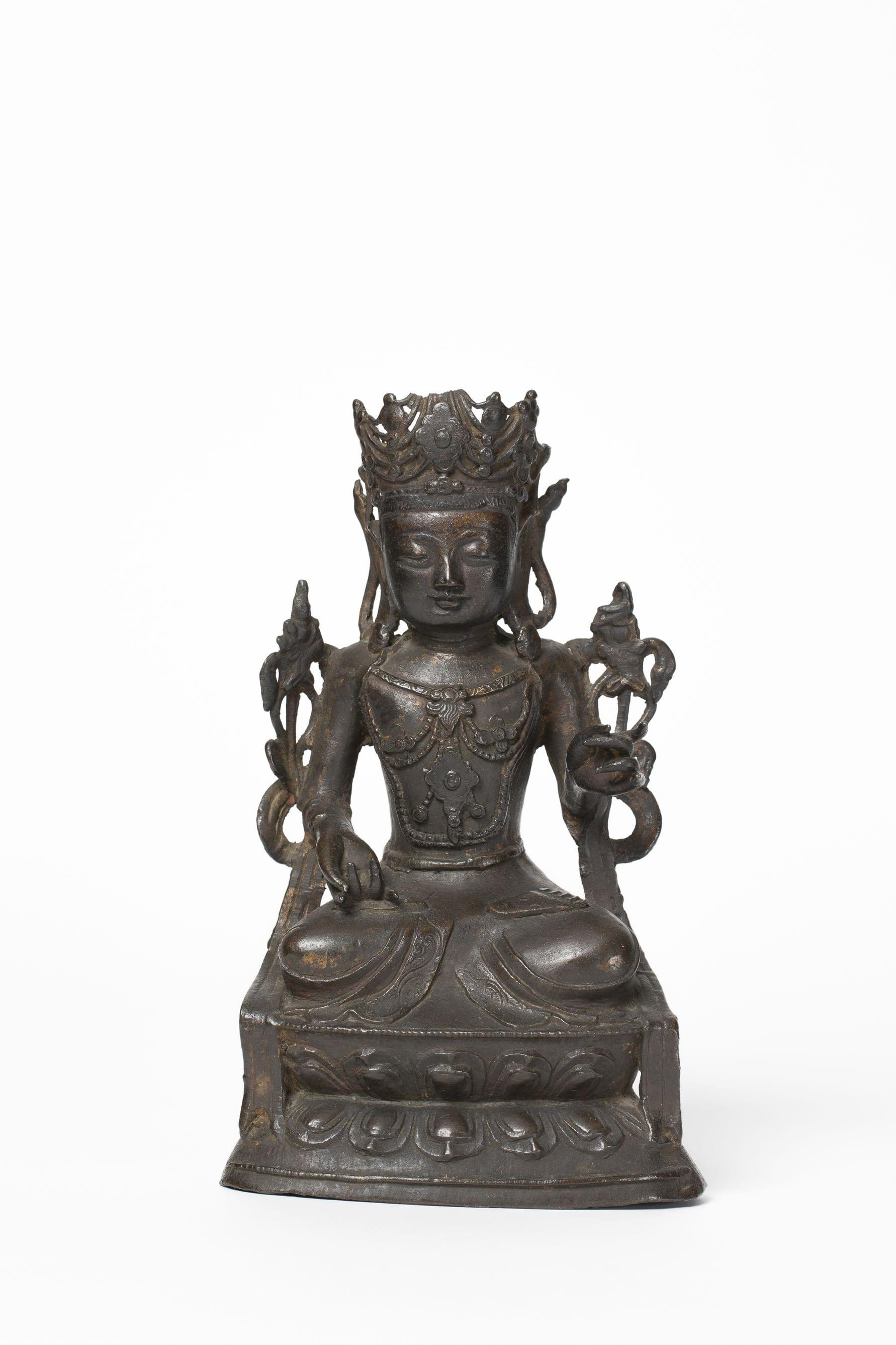 Bronze à patine foncée, H 23 cm. A gilt-bronze figure of Buddha, Ming dynasty. Provenance: collection of a swiss gentleman
