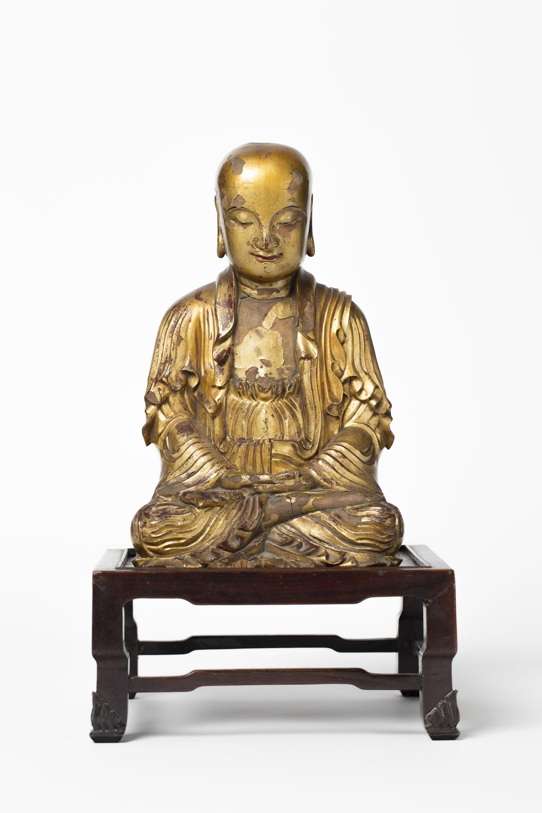 Bois laqué or, H 28 cm. A gilt-bronze figure of Buddha, Ming dynasty. Provenance: collection of a swiss gentleman