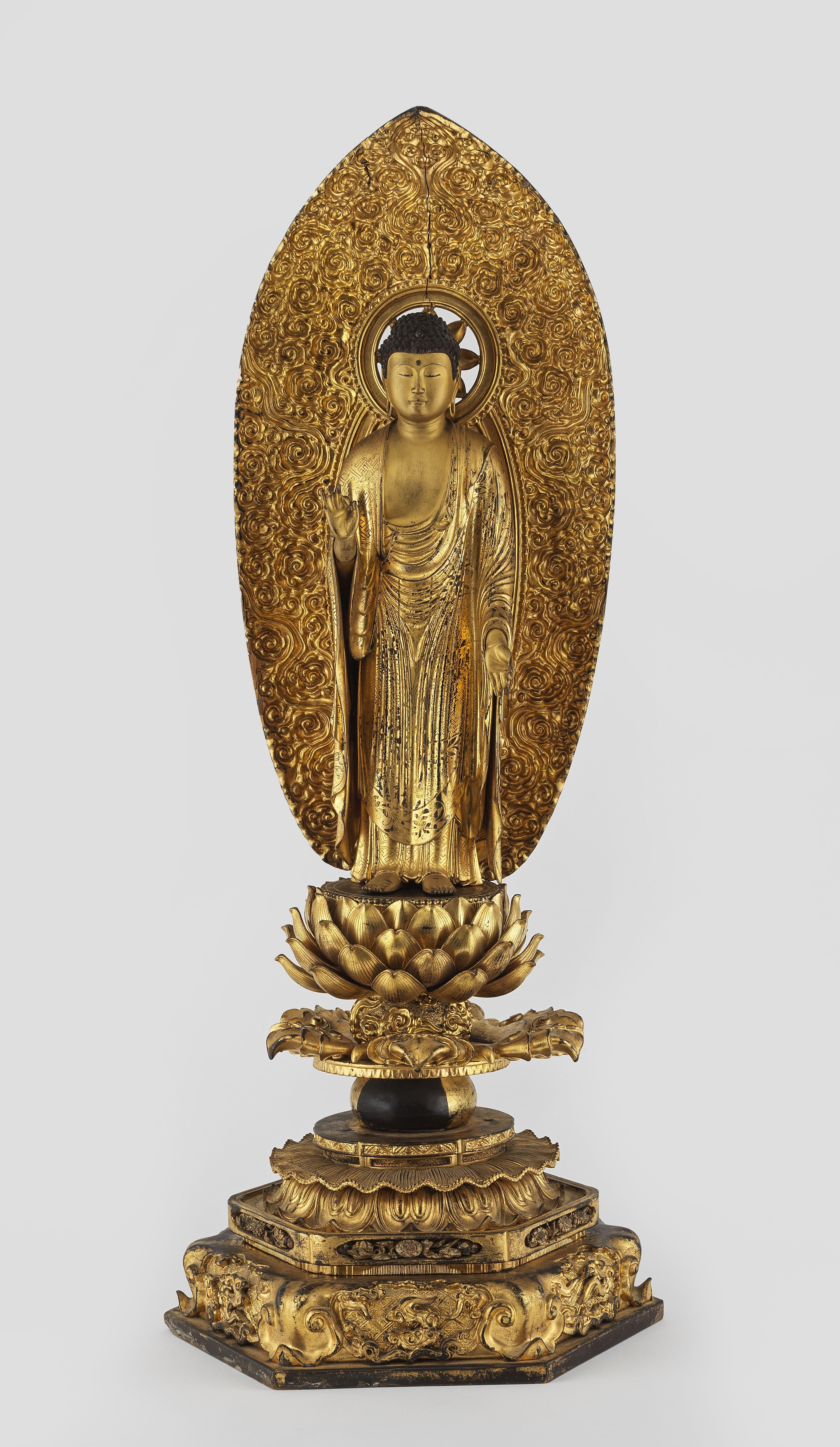 Porcelaine émaillée bleu rouge et or, H 45 cm