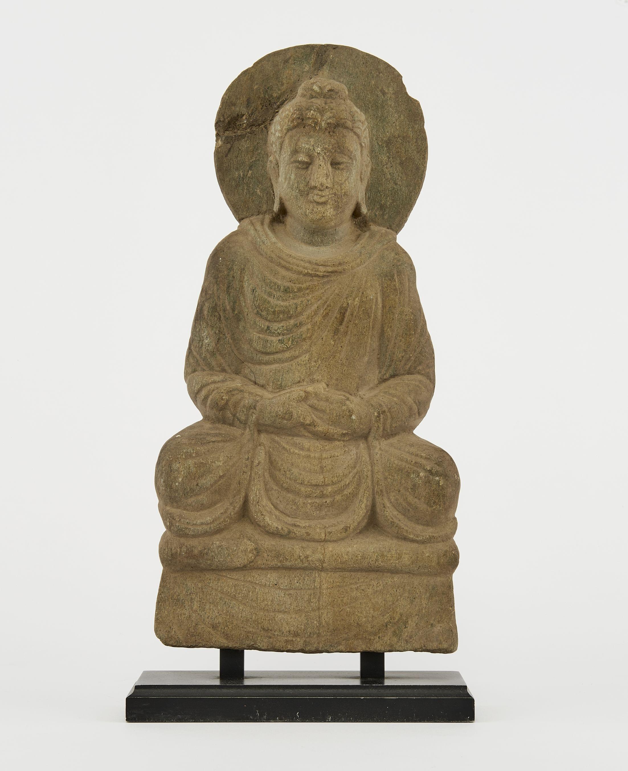 Bois sculpté et doré, marbre blanc, H 80 cm. Provenance: collect...