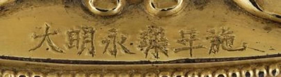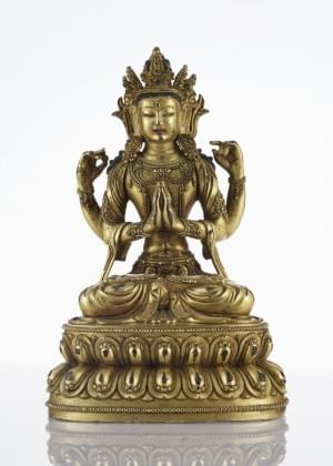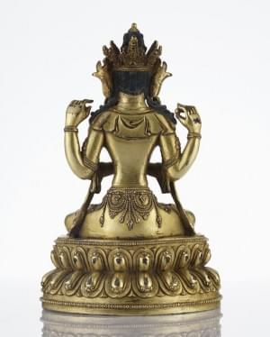Figuré assis, bronze doré et peint, marque sur la base, H 18 cm
