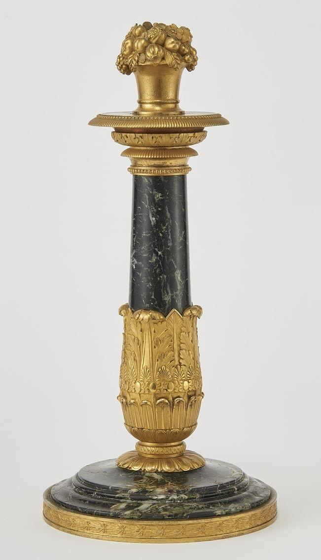 Bronze doré et marbre à décor de fruits et palmettes, H 28 cm