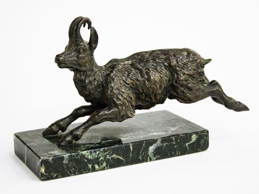 Bronze à patine brune, socle en marbre vert, L 15 cm