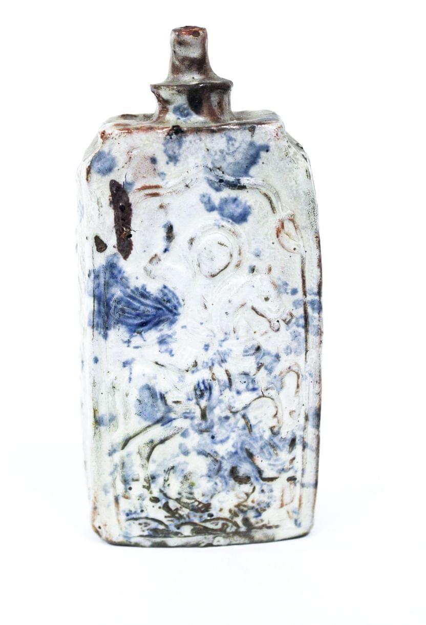 144. Deux gourdes rondes à décor sculpté, pour l'une d'un saint et d'...