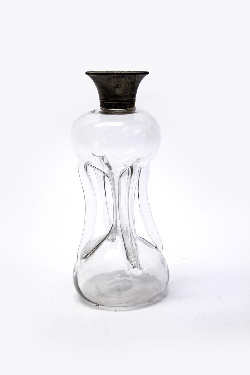 Verre marbré rouge et rosé, métal doré, H 35 cm