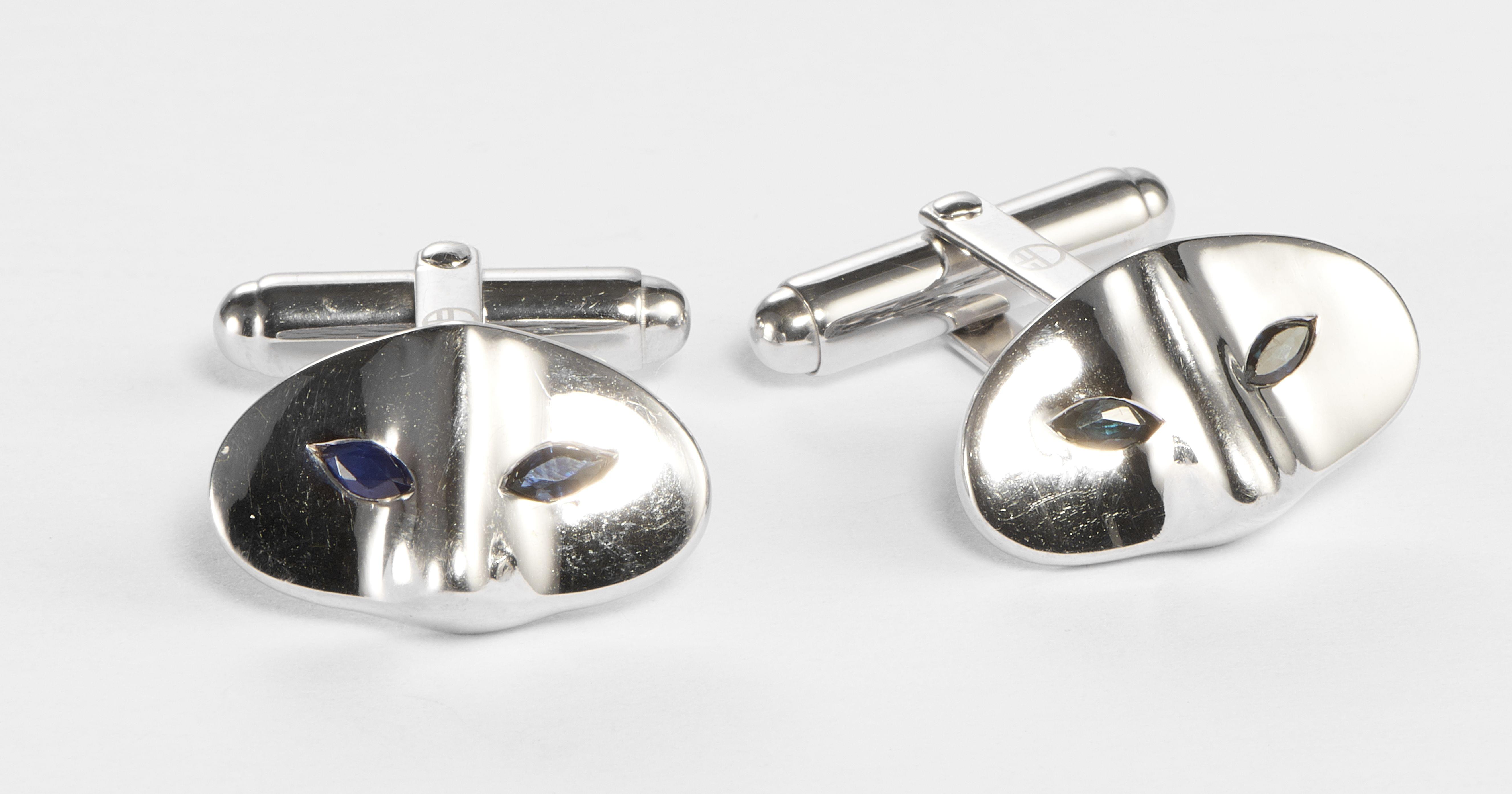 38. Boutons de manchette sertis d'une ligne de topazes bleues taille...