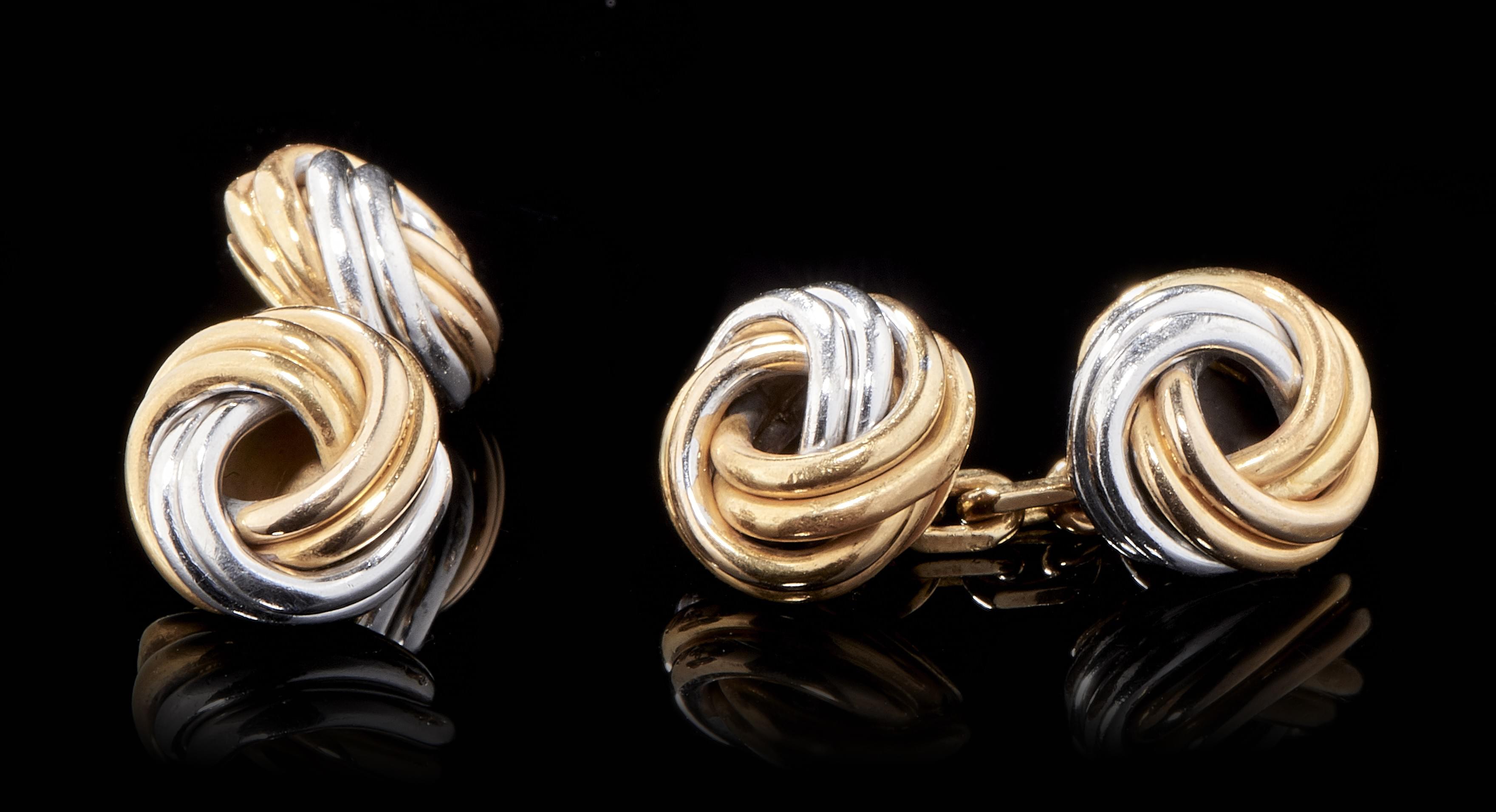 Or gris 750, H 1,5 cm, 4 g. On joint une paire de boutons de man...