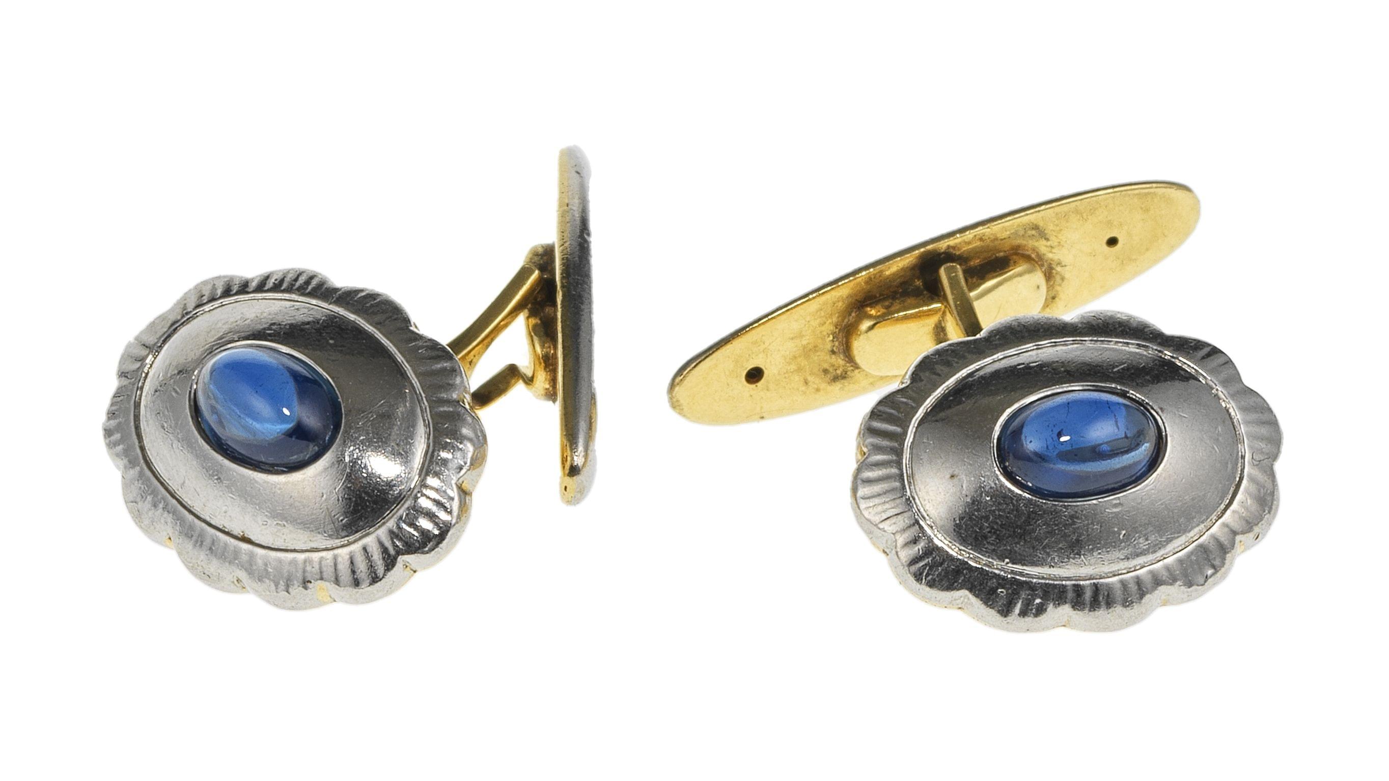 203. Boutons de manchette sertis d'agates bleues en pain de sucre