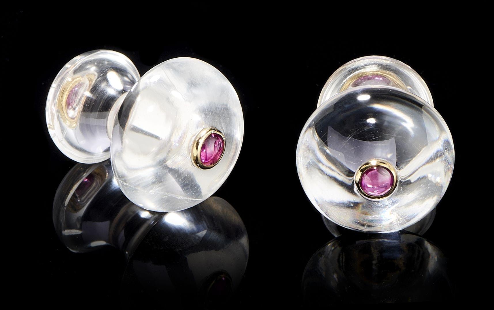 47. Boutons de manchette sertis de deux lignes d'améthystes calibrée...