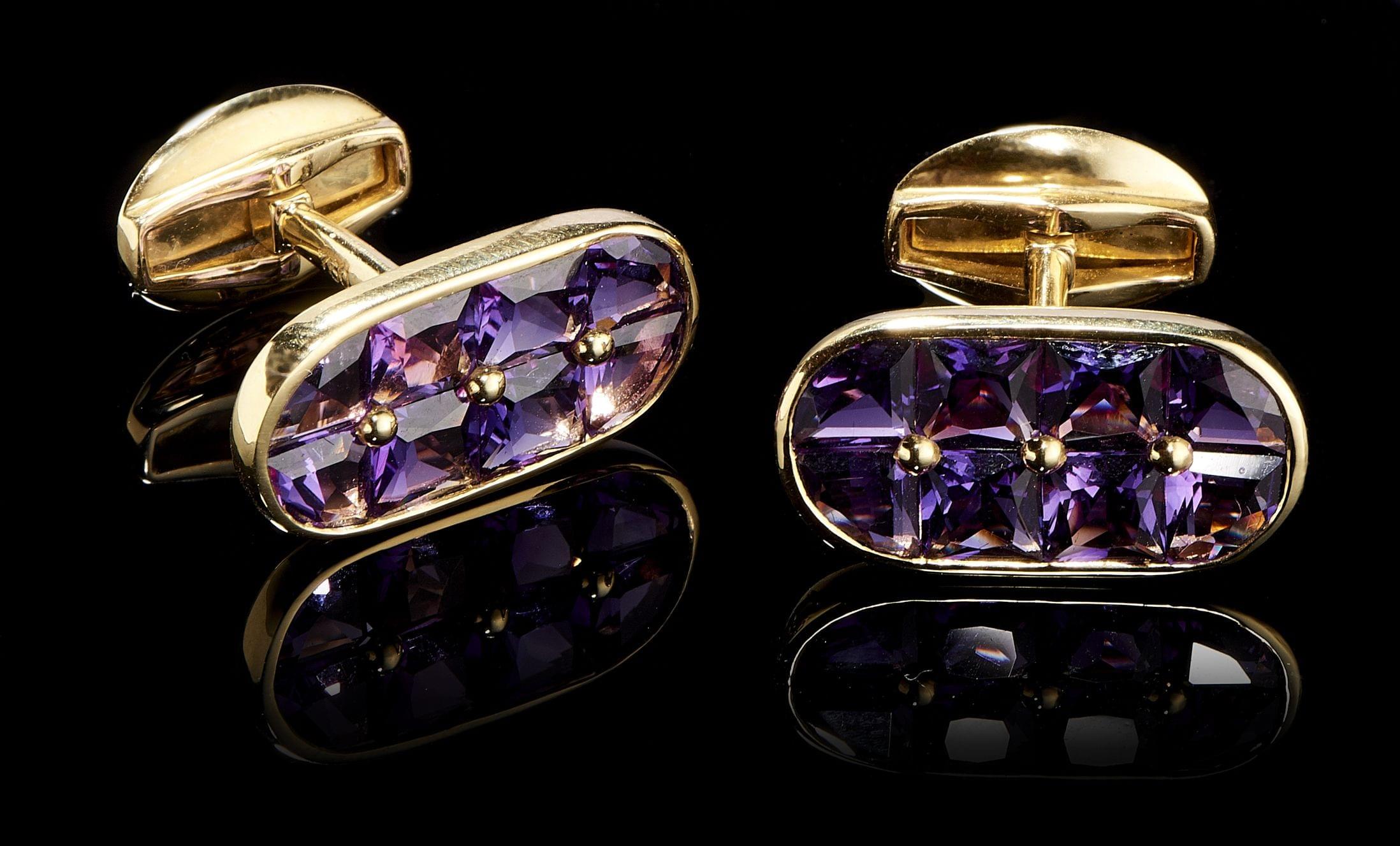 46. Boutons de manchette sertis d'une ligne de citrines taille carré...