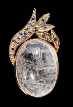 113. Cabochon de cristal de roche talismanique monté en pendentif, Ir...