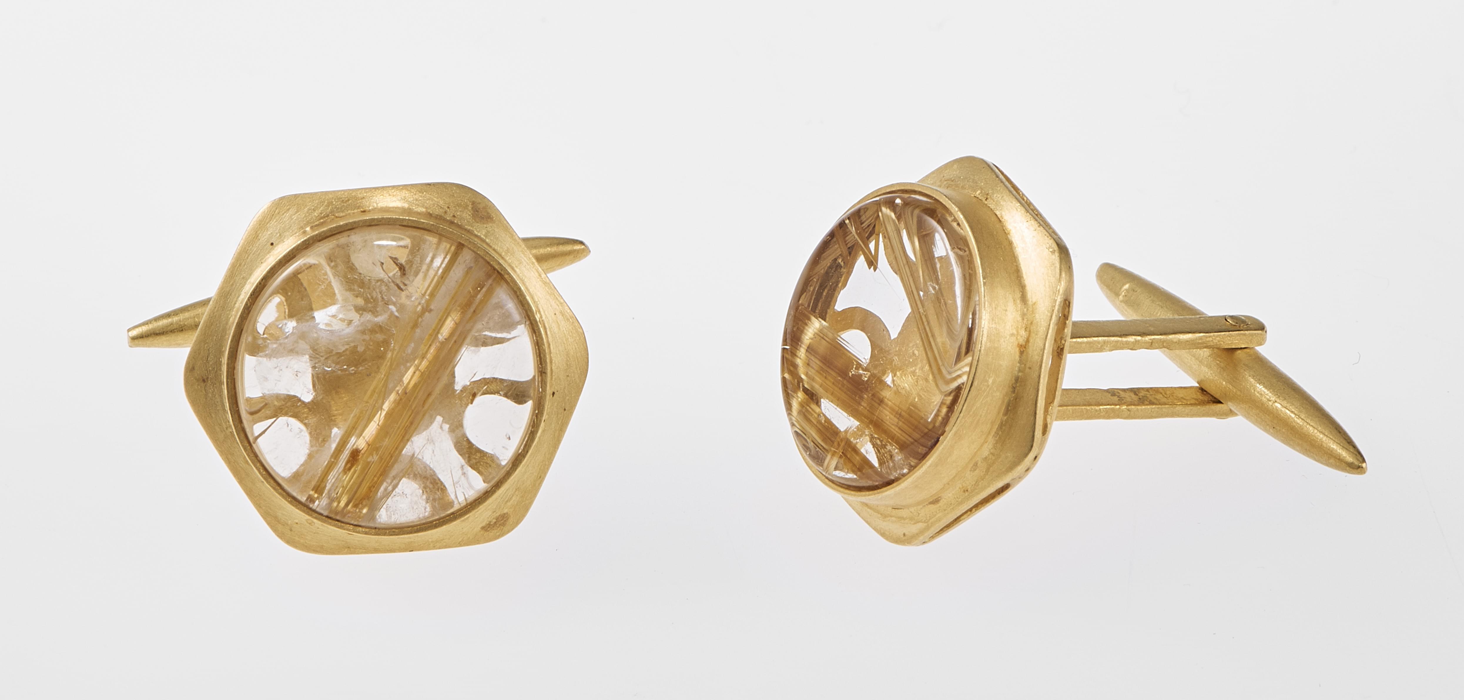 Or gris 750, H 1,5 cm, 4 g. On joint une paire de boutons de man...