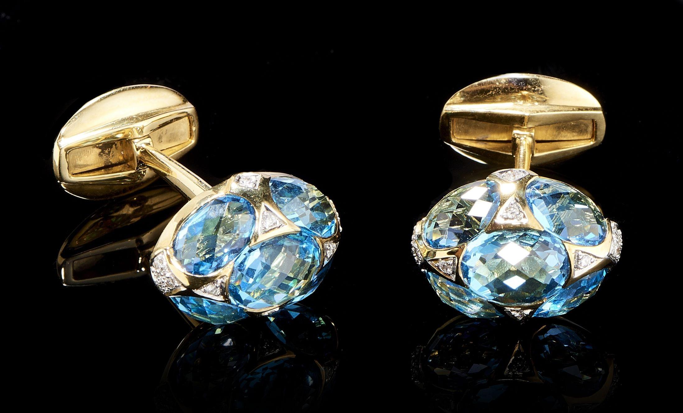 48. Boutons de manchette sertis de topazes bleues facettées rehaussées de diamants