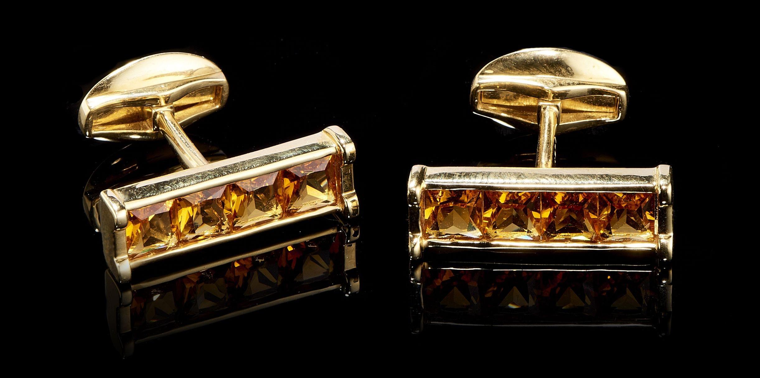 43. Boutons de manchette en cristal de roche sertis de rubis taille...
