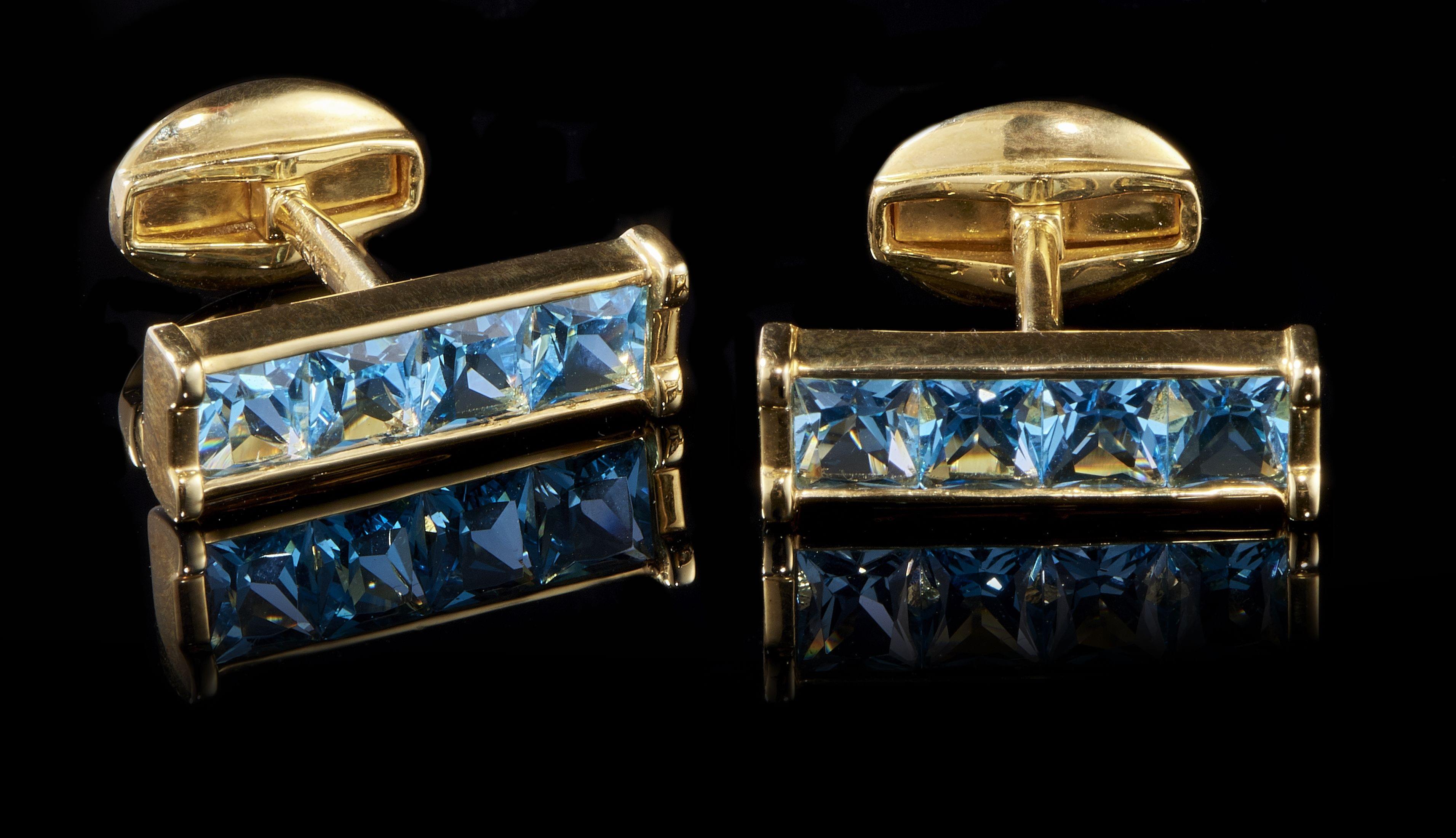36. Boutons de manchette sertis de citrines taille fantaisie facetté...