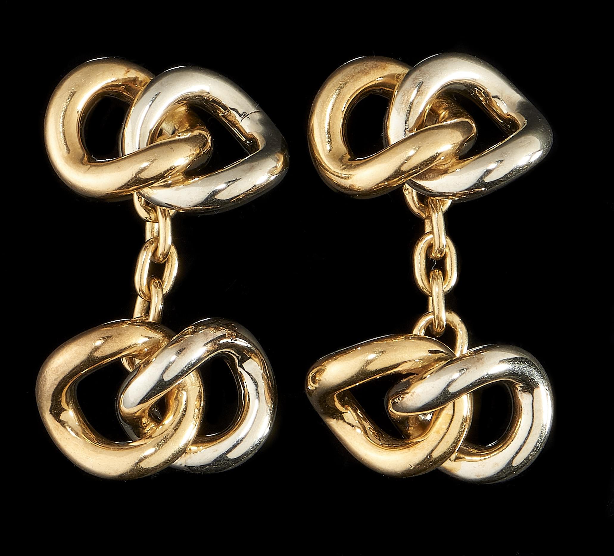 956. Boutons de manchettes à motif de maille gourmette deux ors