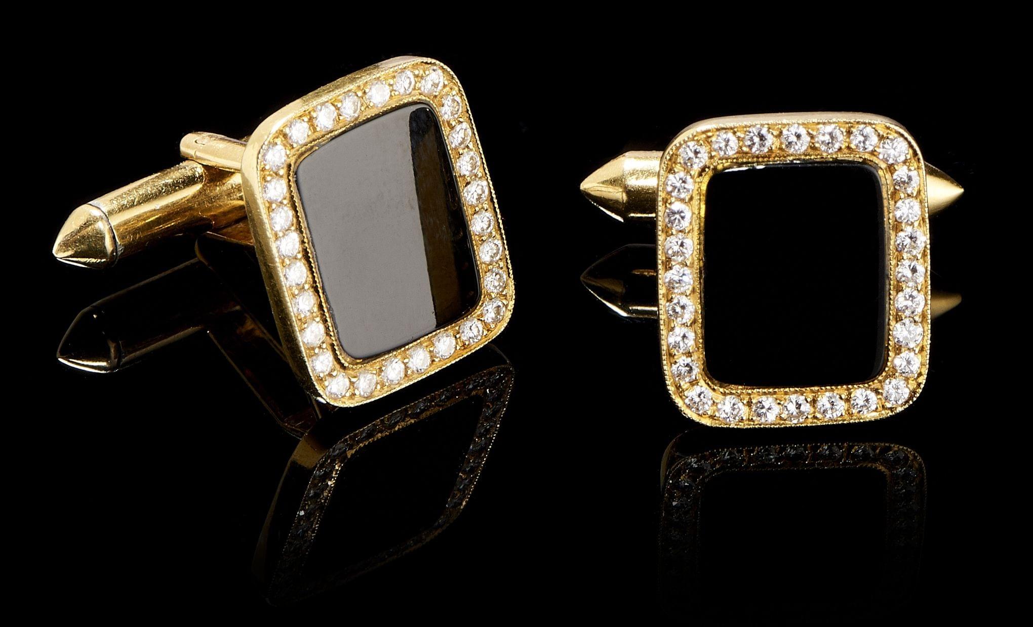 50. Boutons de manchettes rectangulaires sertis d'une plaque d'onyx entourée de diamants