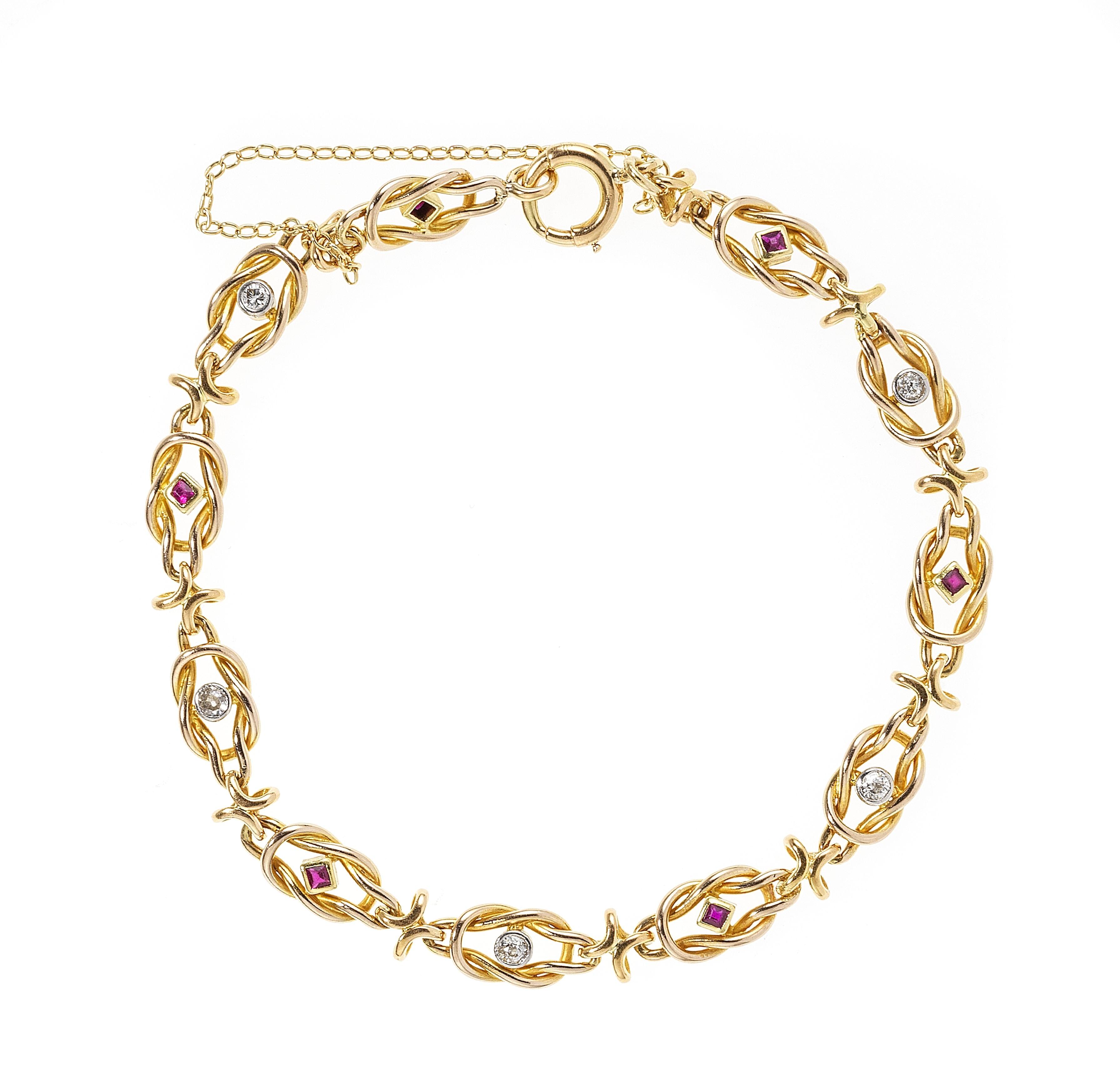 3359. Bracelet à maille entrelacée sertie de diamants et de rubis en alternance