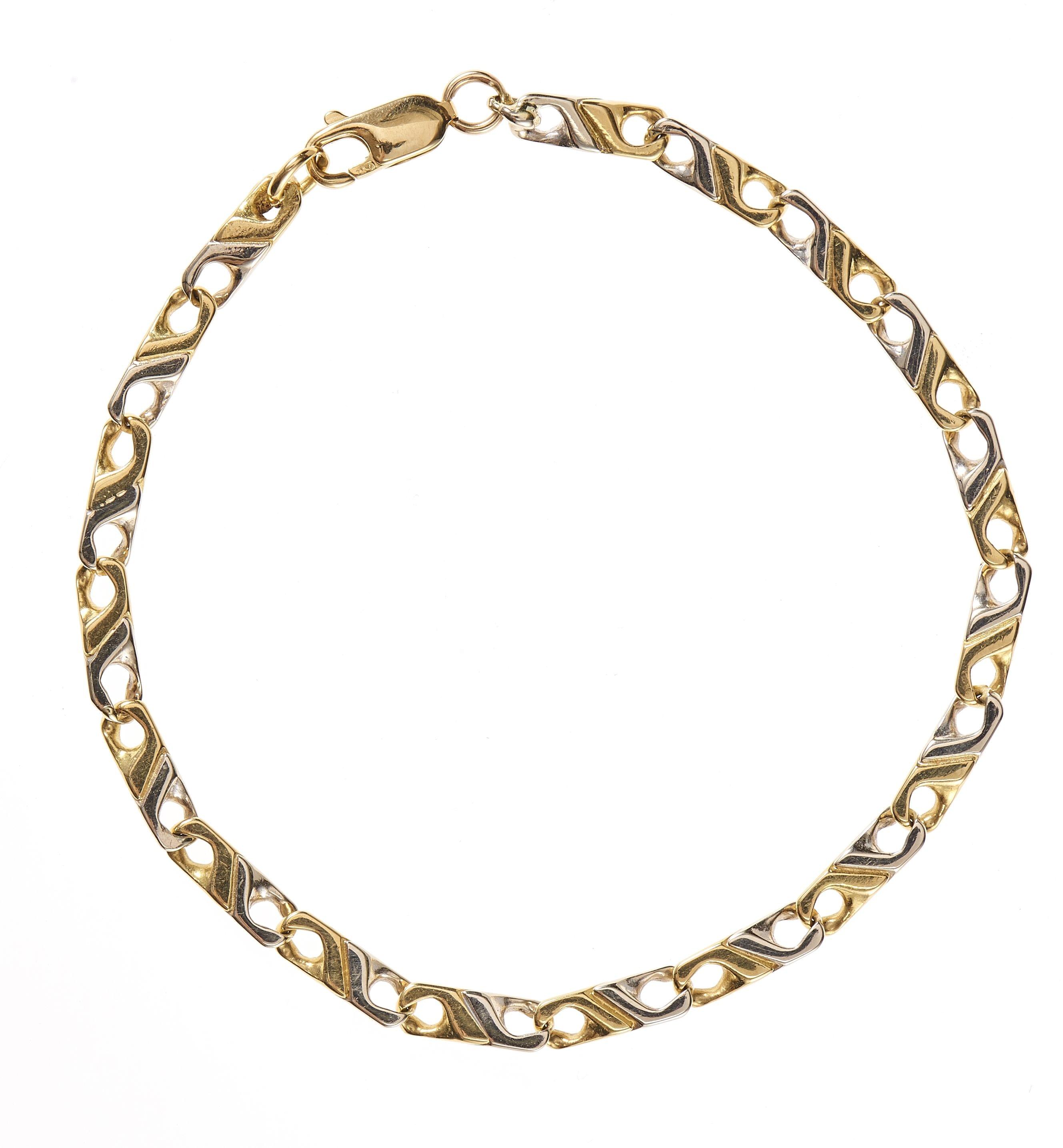 3437. Bracelet à maille fantaisie deux ors