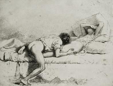 Tenant une grappe dans la main droite, calcaire sculpté, traces...