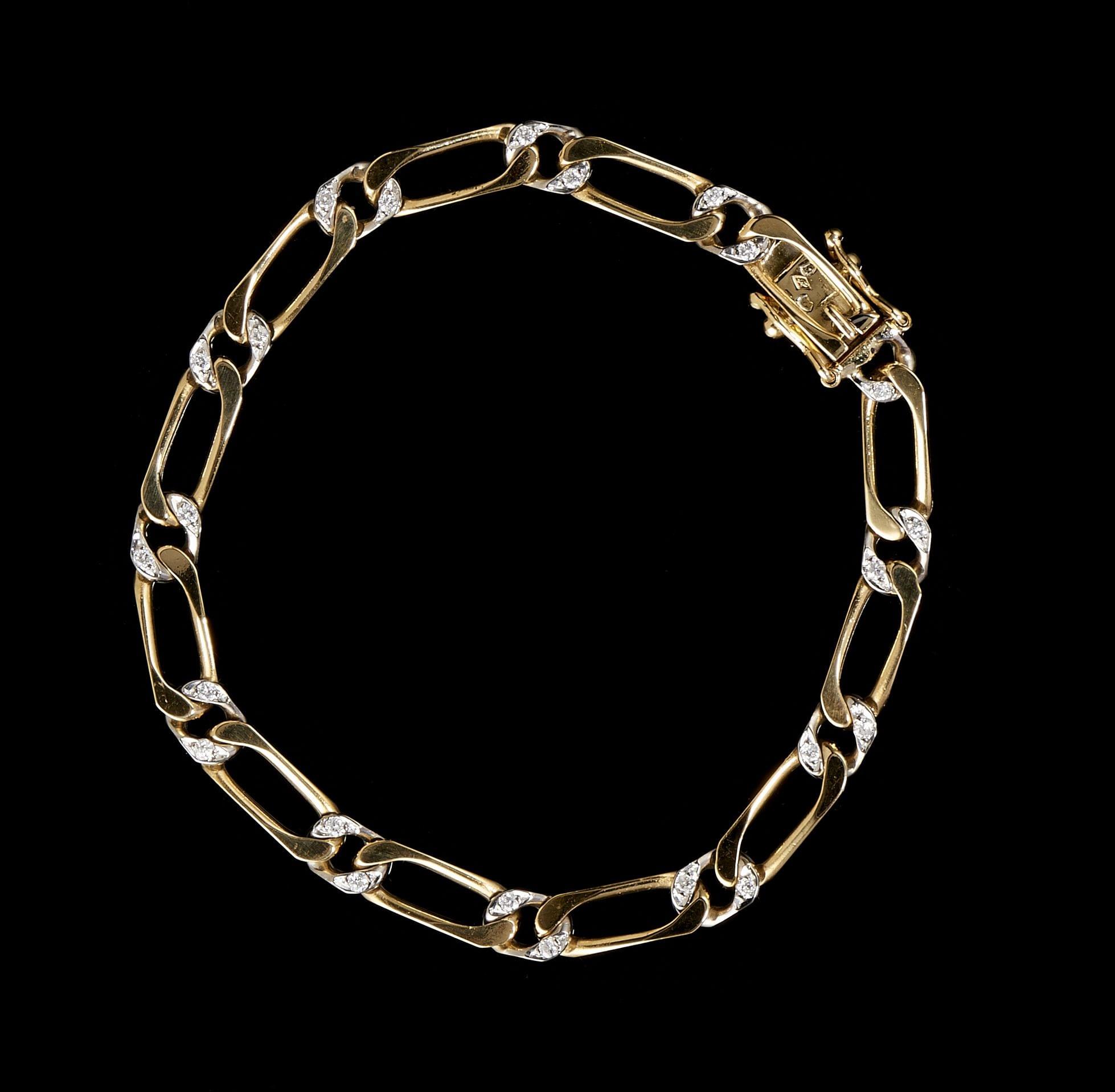 140. Bracelet à maille figaro bicolore sertie de diamants