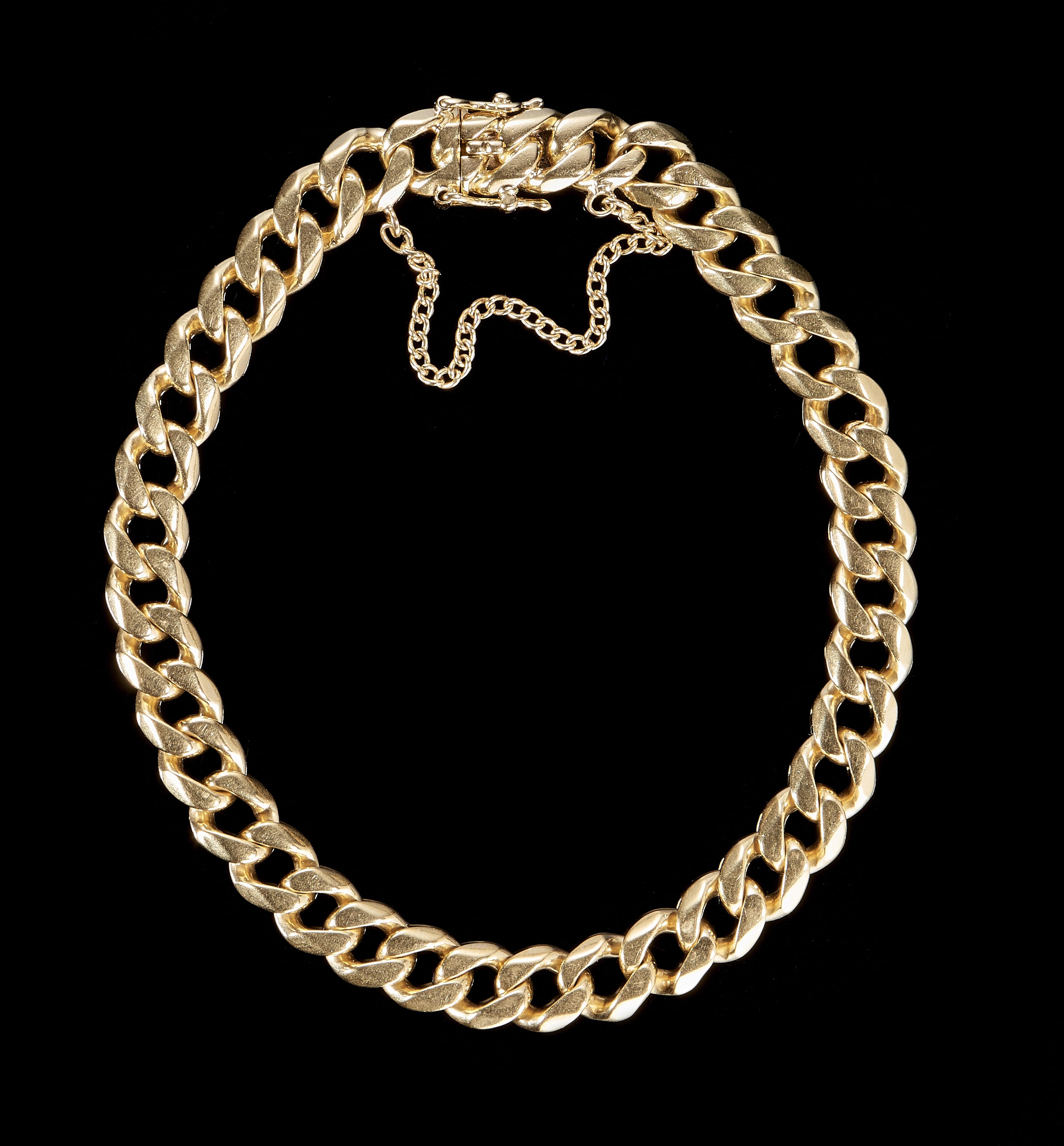 Cadran gris, index bâtons et aiguilles dorés, or 750, D 14 mm, p...