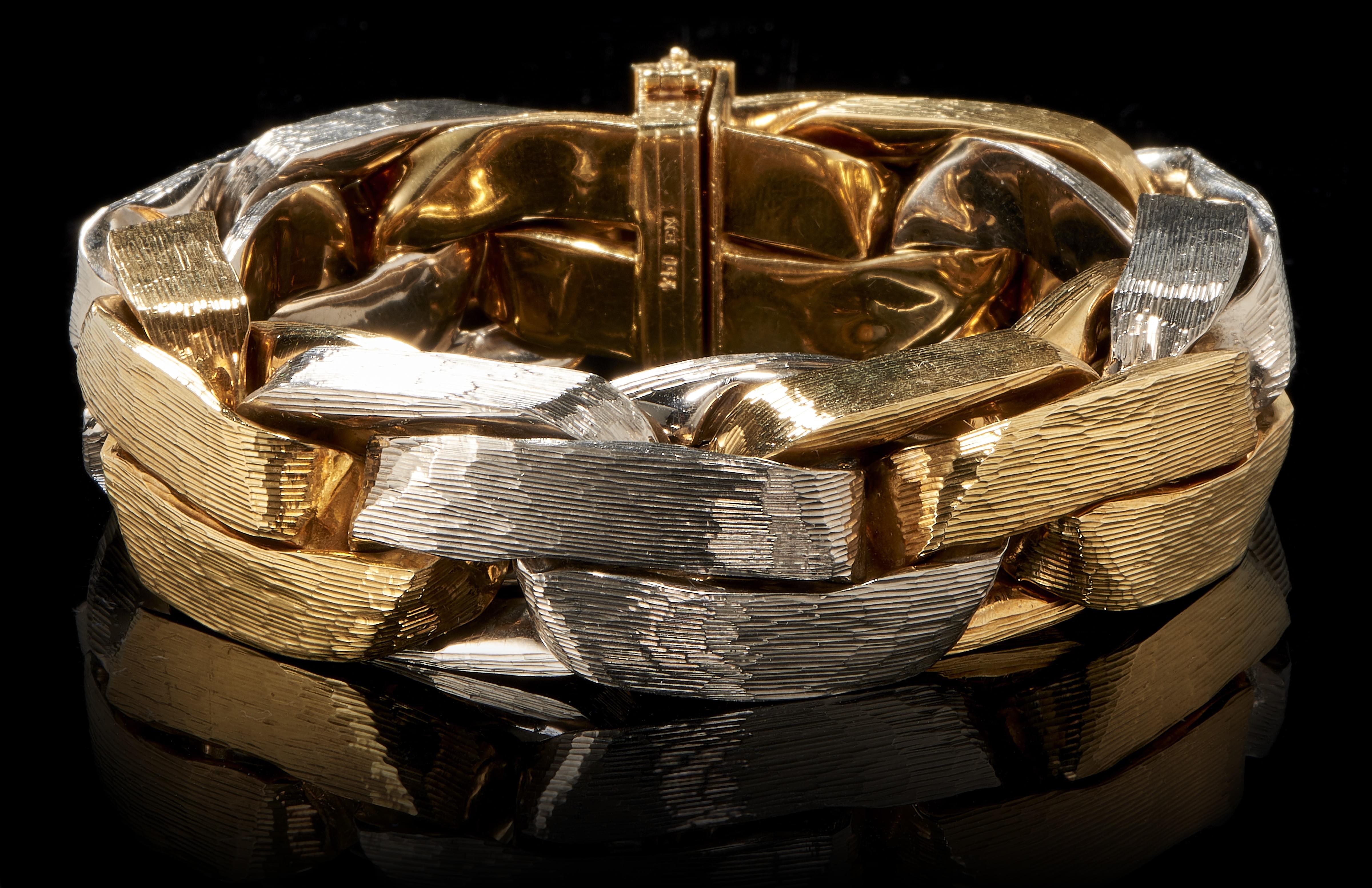 Cadran gris, aiguilles et index bâtons noirs, or gris 750, 17x15...